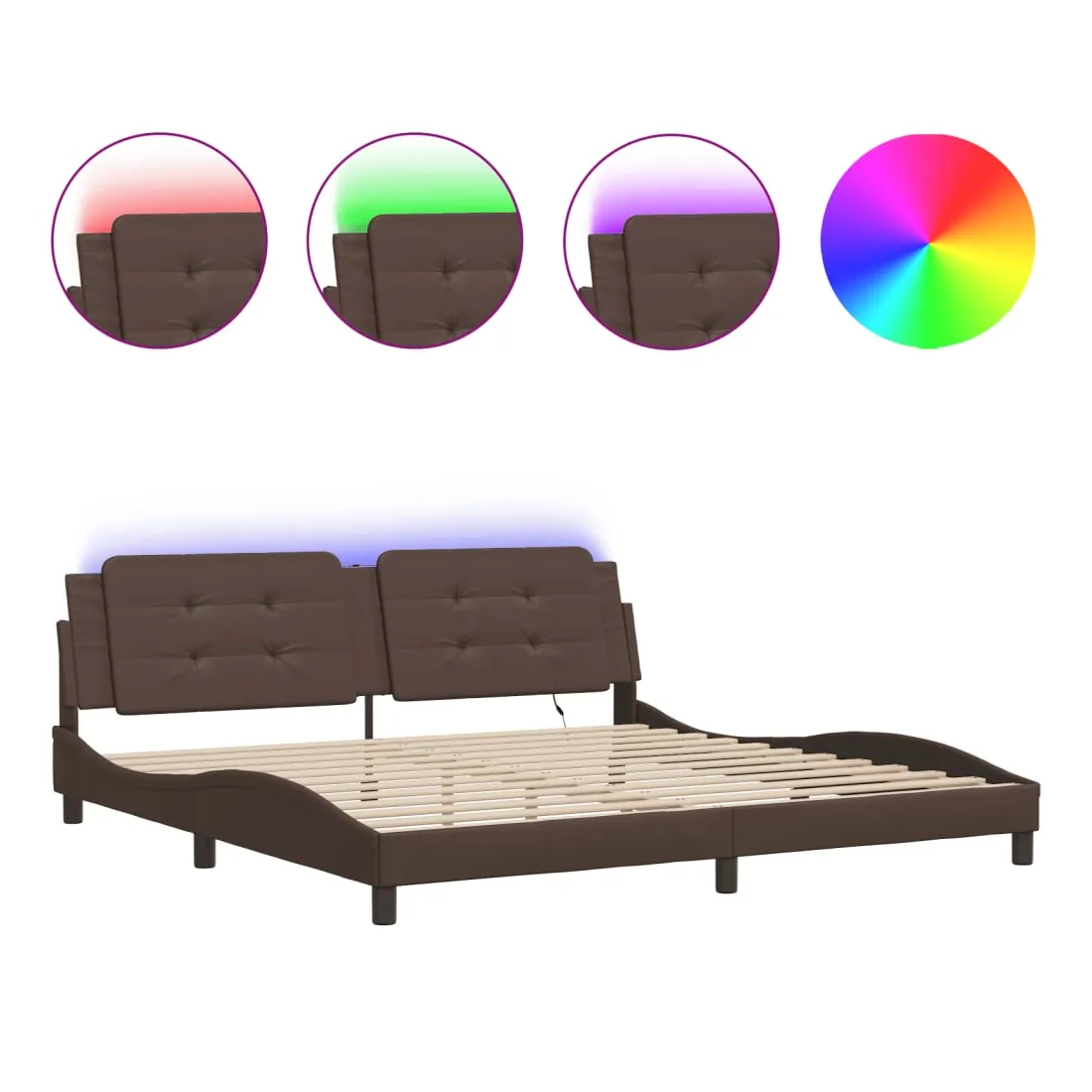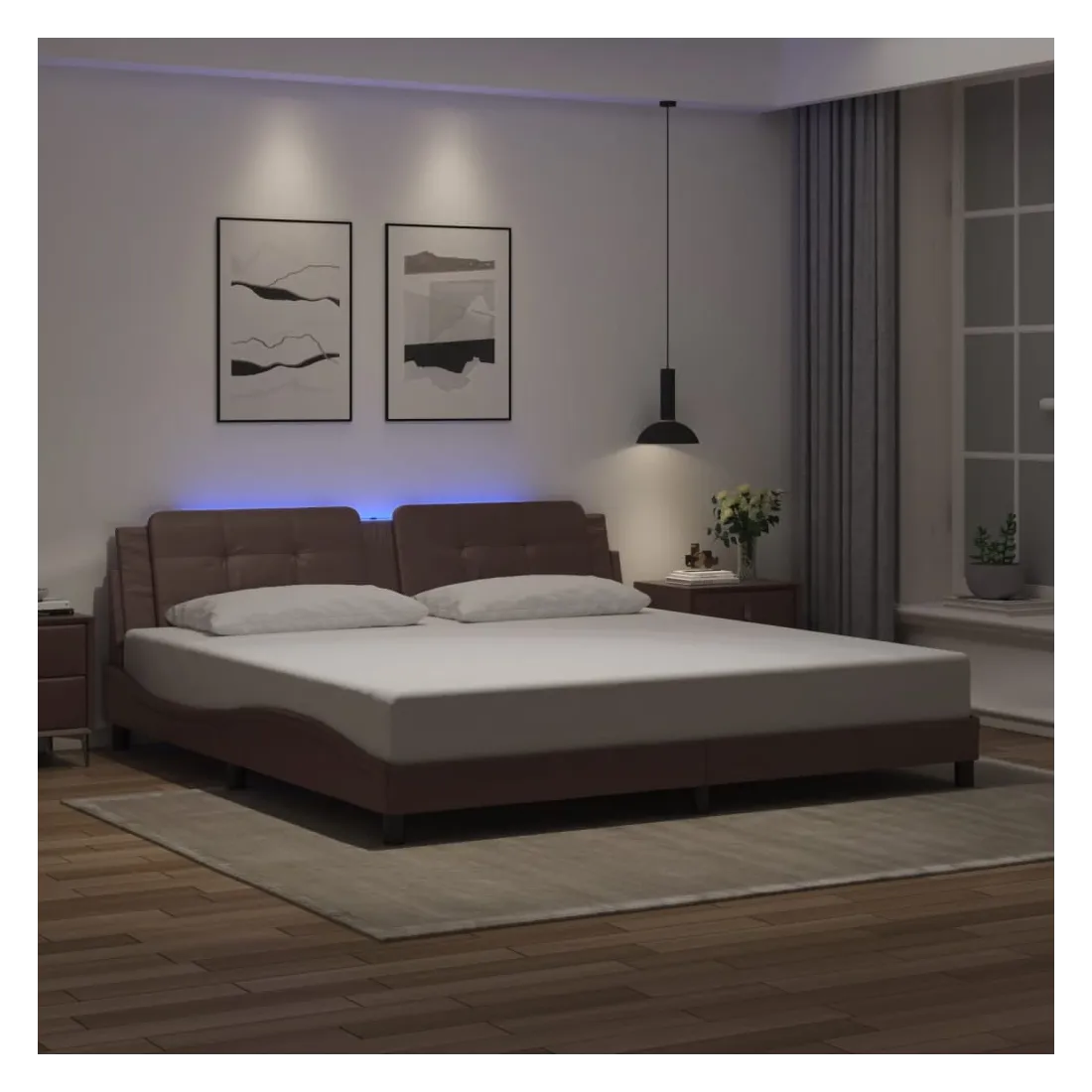 Cadre de lit avec LED sans matelas Zadar marron 200x200 cm