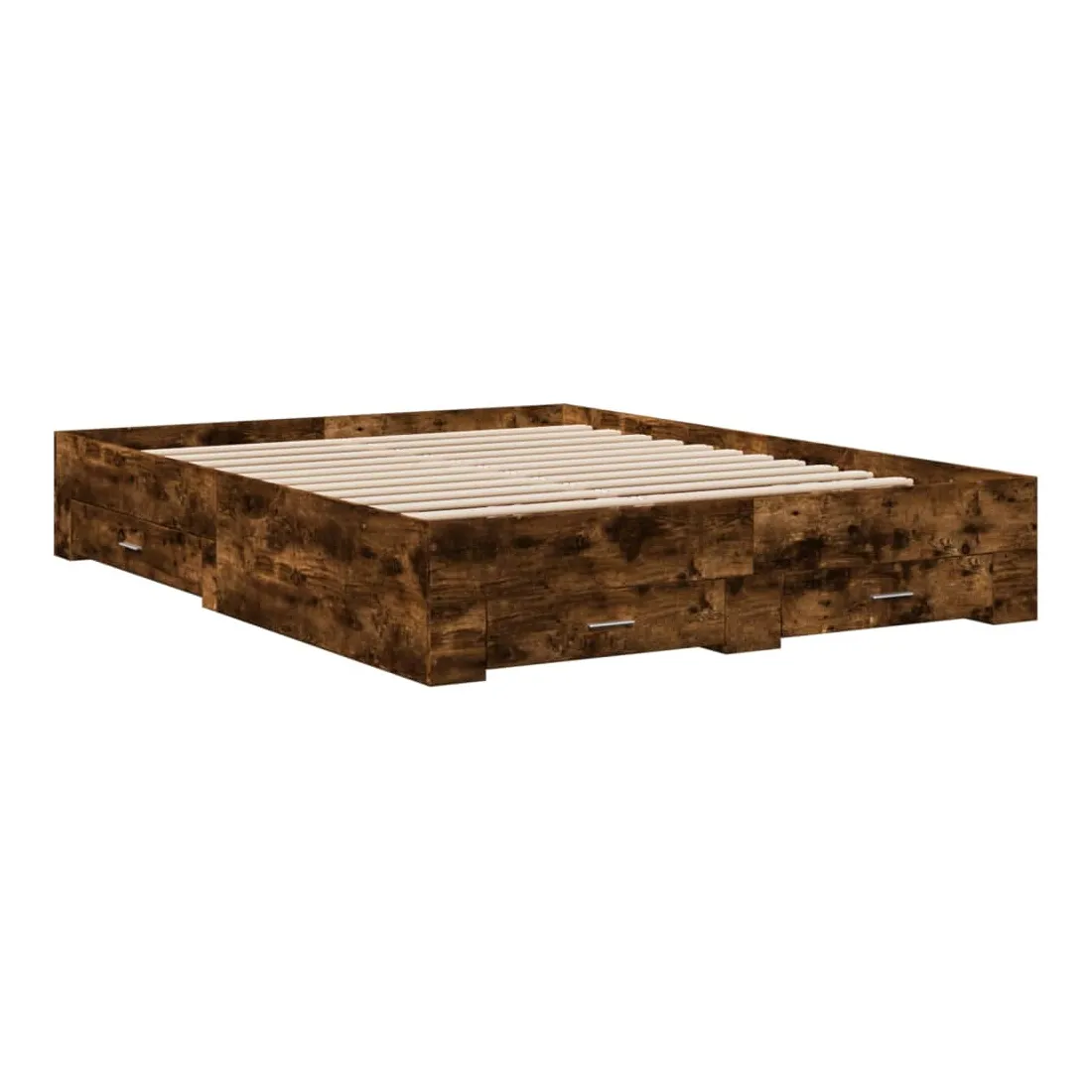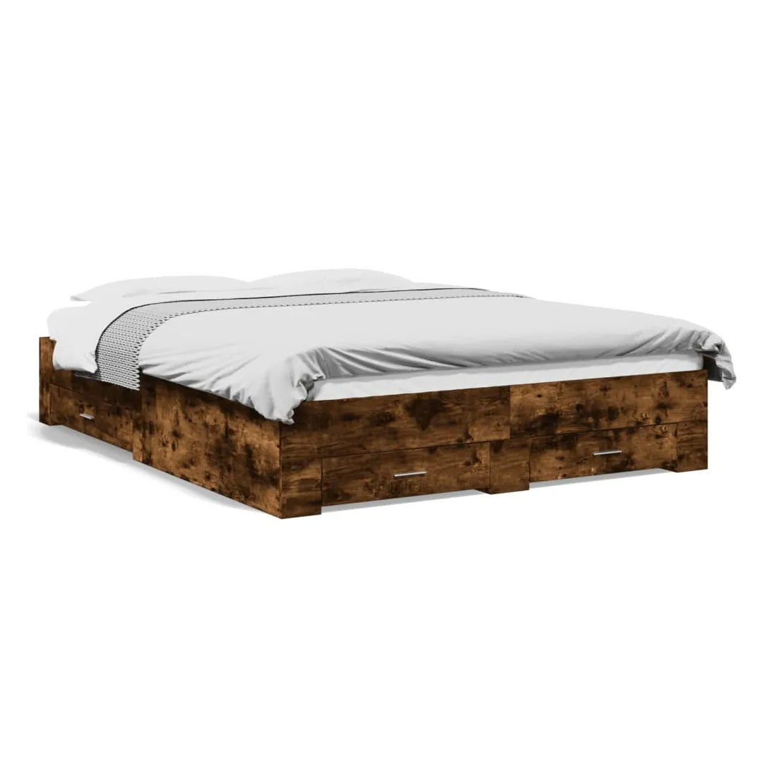 Ajoutez une touche moderne à votre chambre à coucher avec ce cadre de lit avec tiroirs ! Il apportera une touche pratique et décorative à votre espace de vie. Matériau durable : le cadre de lit est fabriquée en bois d'ingénierie. Le bois d'ingénierie est d'une qualité exceptionnelle avec une surface lisse et présente également de la résistance, de la stabilité et de la résistance à l'humidité.Lattes robustes : les lattes de contreplaqué assurent une bonne répartition du poids, garantissant que le matelas reste en place à chaque torsion de votre corps pendant le sommeil.Fonction de rangement : les tiroirs de lit inclus offrent suffisamment d'espace de rangement pour ranger vos articles essentiels, gardant votre pièce propre et bien rangée. Bon à savoir :Un matelas n'est pas inclus avec ce lit. Nous offrons une sélection variée de matelas. Vous pouvez consulter notre boutique pour trouver un matelas assorti.