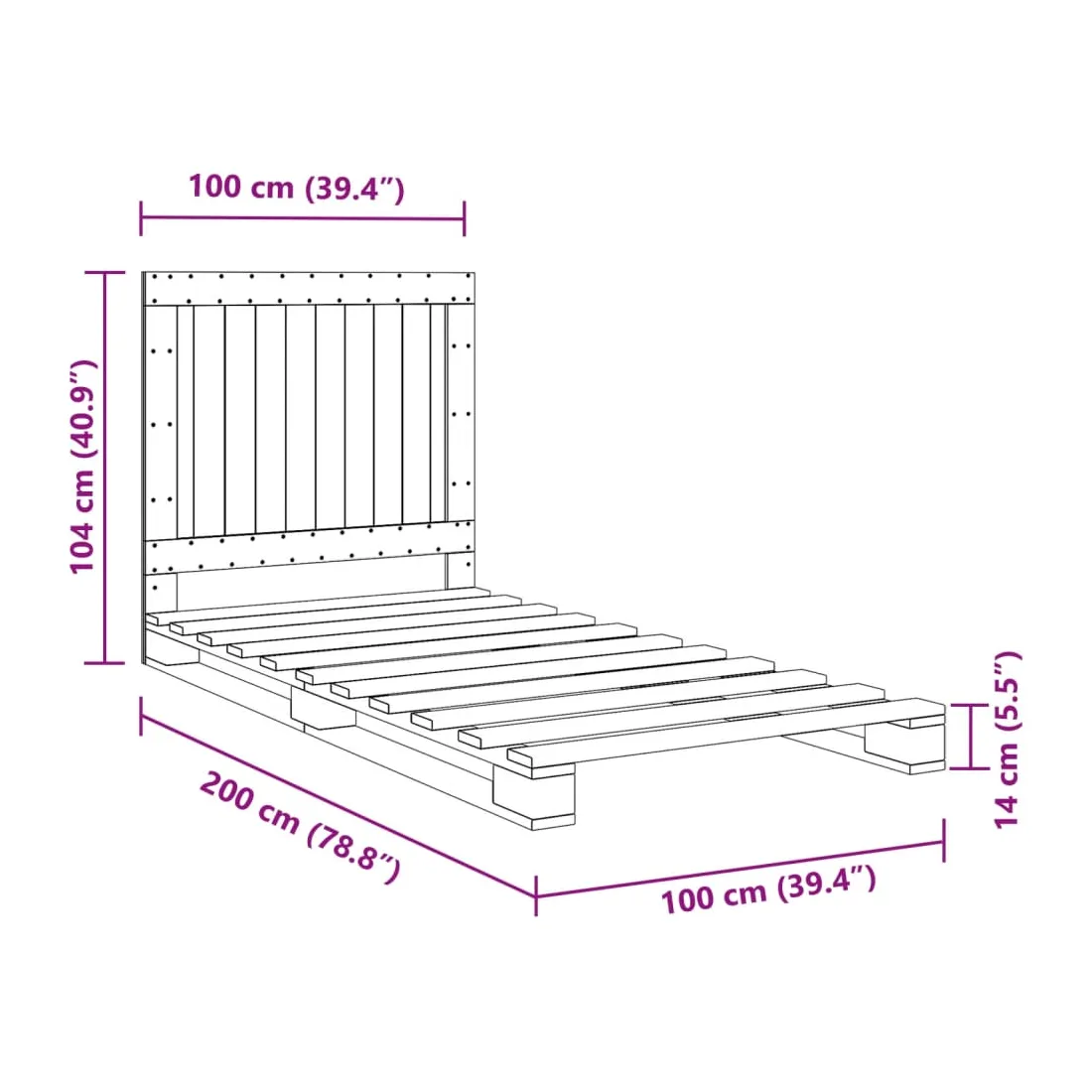 - Dimensions du matelas correspondant : 100 x 200 cm (l x L) (matelas non inclus)