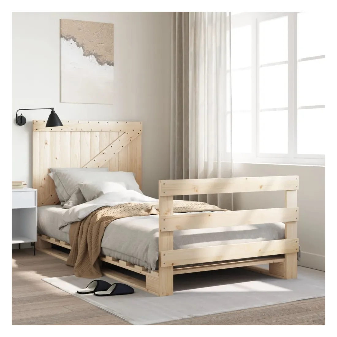 Obtenez une meilleure nuit de sommeil reposante grâce à ce cadre de lit ! Il est un supplément accueillant à toute chambre à coucher. Matériau durable : le bois de pin massif est un matériau naturel magnifique. Le bois de pin a un grain droit et les nœuds donnent au matériau son aspect caractéristique et rustique. Fabriqué en pin massif, ce lit est robuste et durable. Lattes robustes : les lattes robustes assurent une bonne répartition du poids, garantissant que le matelas reste en place à chaque torsion de votre corps pendant le sommeil. Tête de lit et pied de lit fonctionnels : la tête et le pied de lit du lit en bois peuvent maintenir votre matelas en place. De plus, la tête de lit vous offre un excellent soutien du dos lorsque vous vous asseyez dans le lit pour lire ou regarder la télévision. Bon à savoir : Un matelas n'est pas inclus avec ce lit. Nous offrons une sélection variée de matelas. Vous pouvez consulter notre boutique pour trouver un matelas assorti.