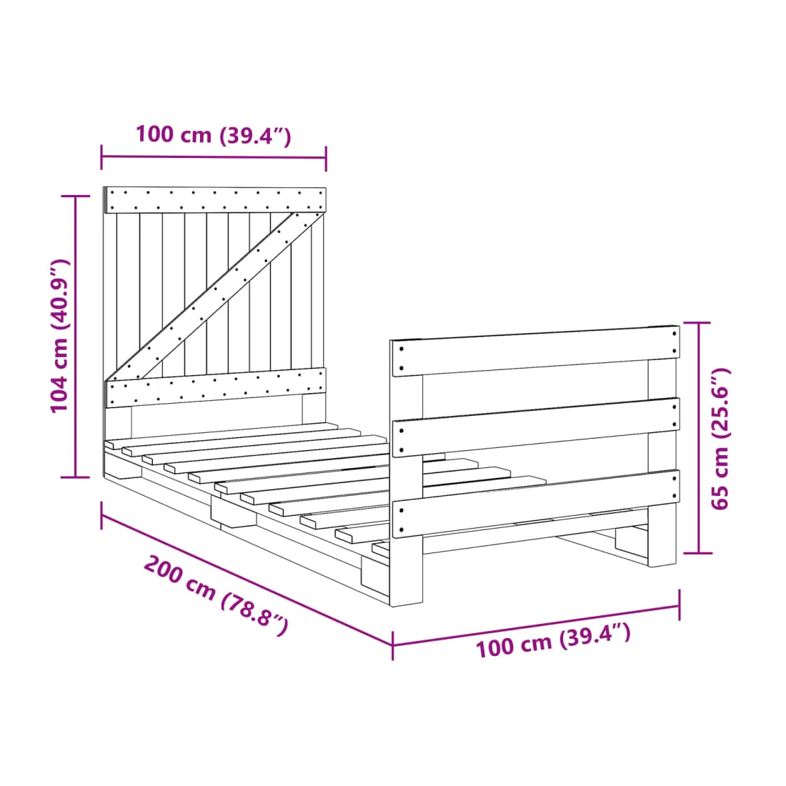 - Dimensions : 200 x 100 x 104 cm (L x l x H)