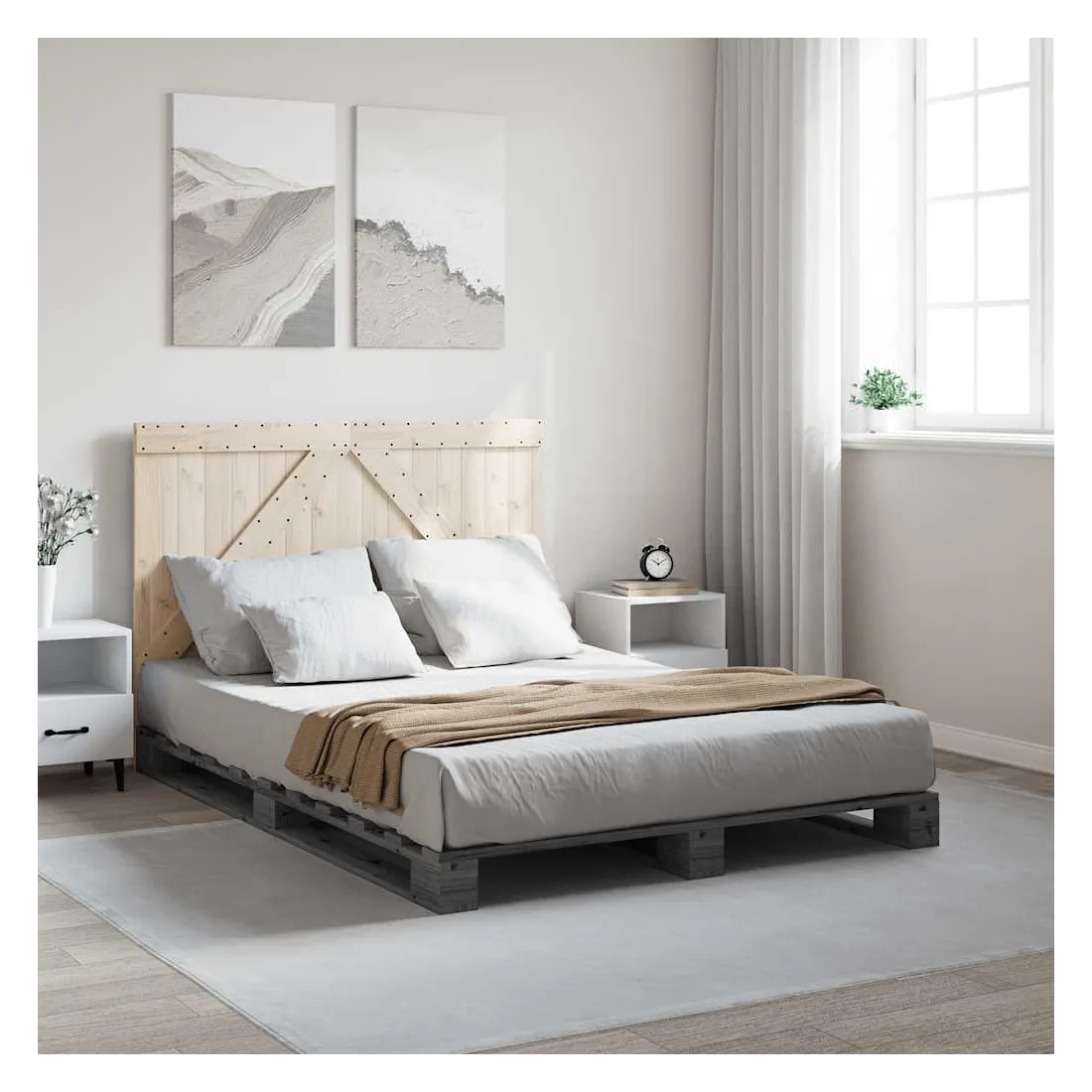 Cadre de lit sans matelas gris 140x200 cm bois massif de pin
