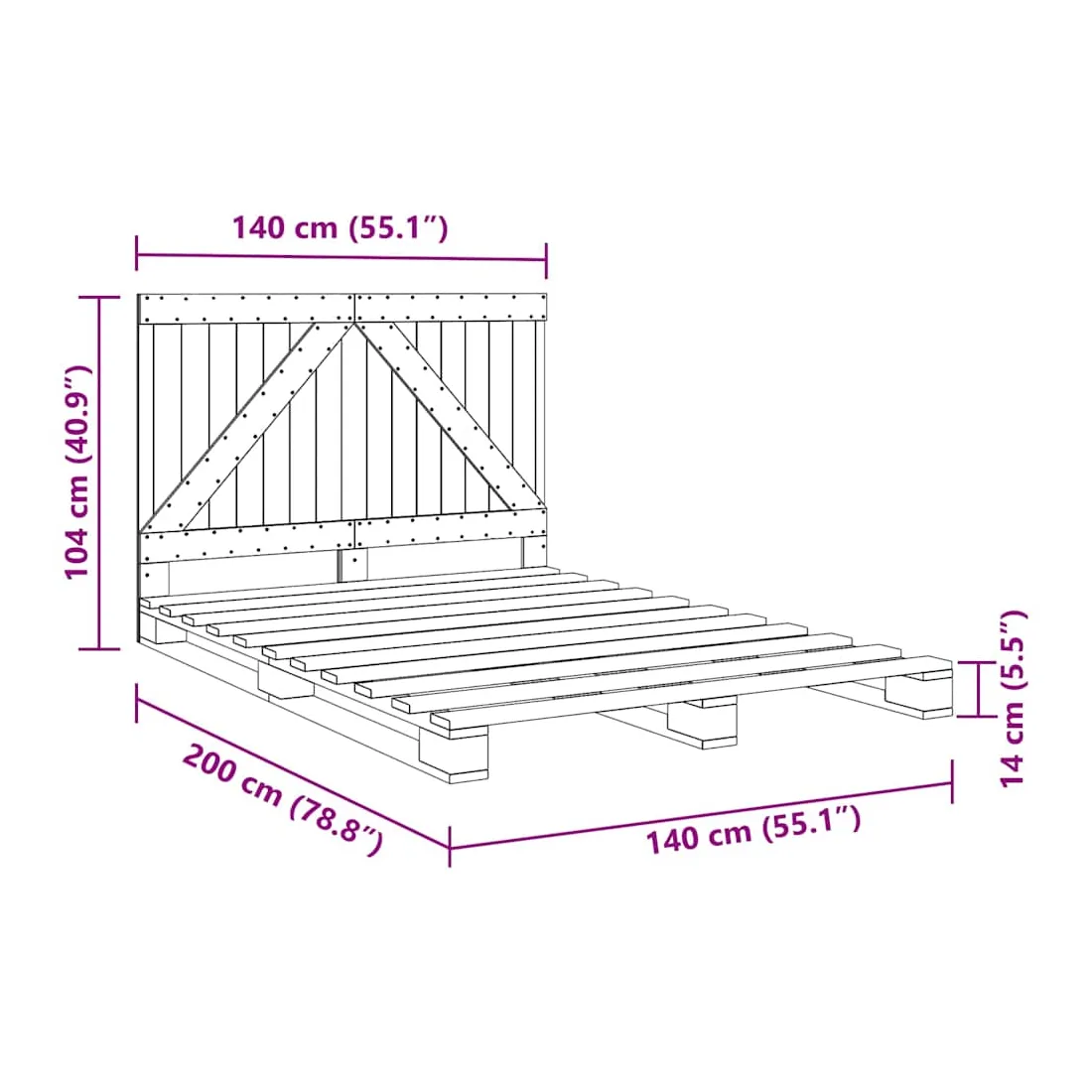 • Dimensions du matelas correspondant : 140 x 200 cm (l x L) (matelas non inclus)