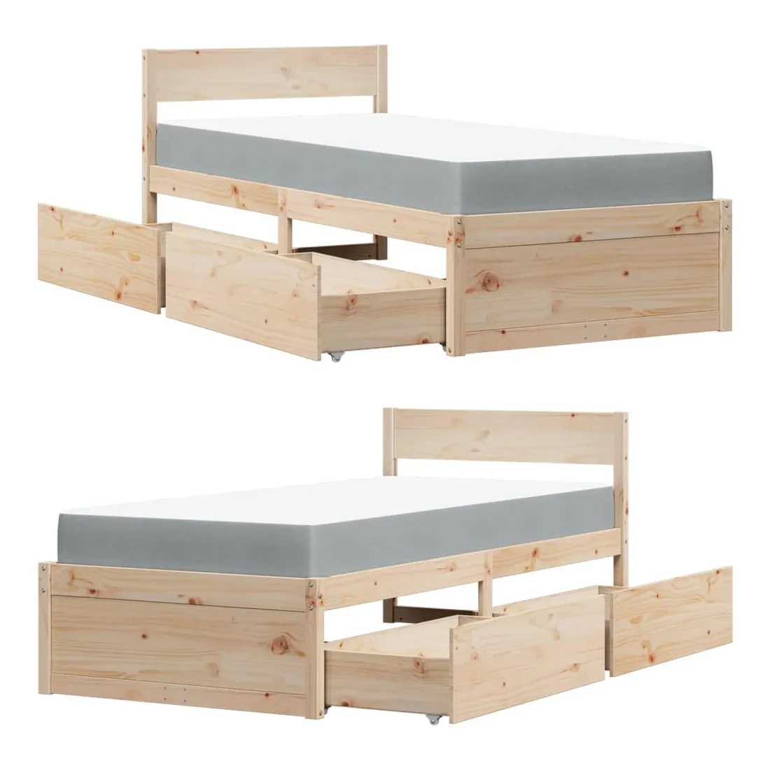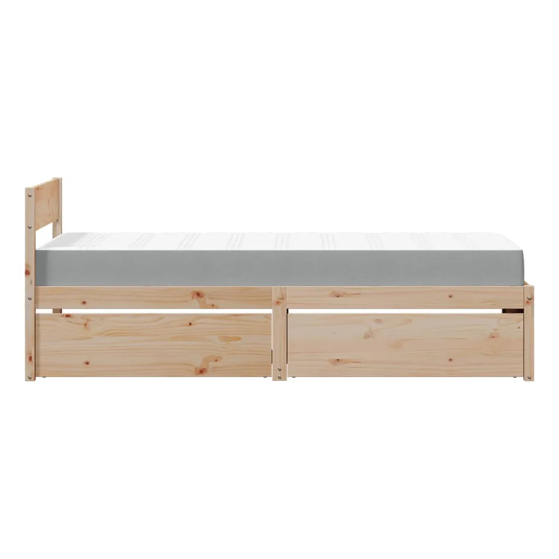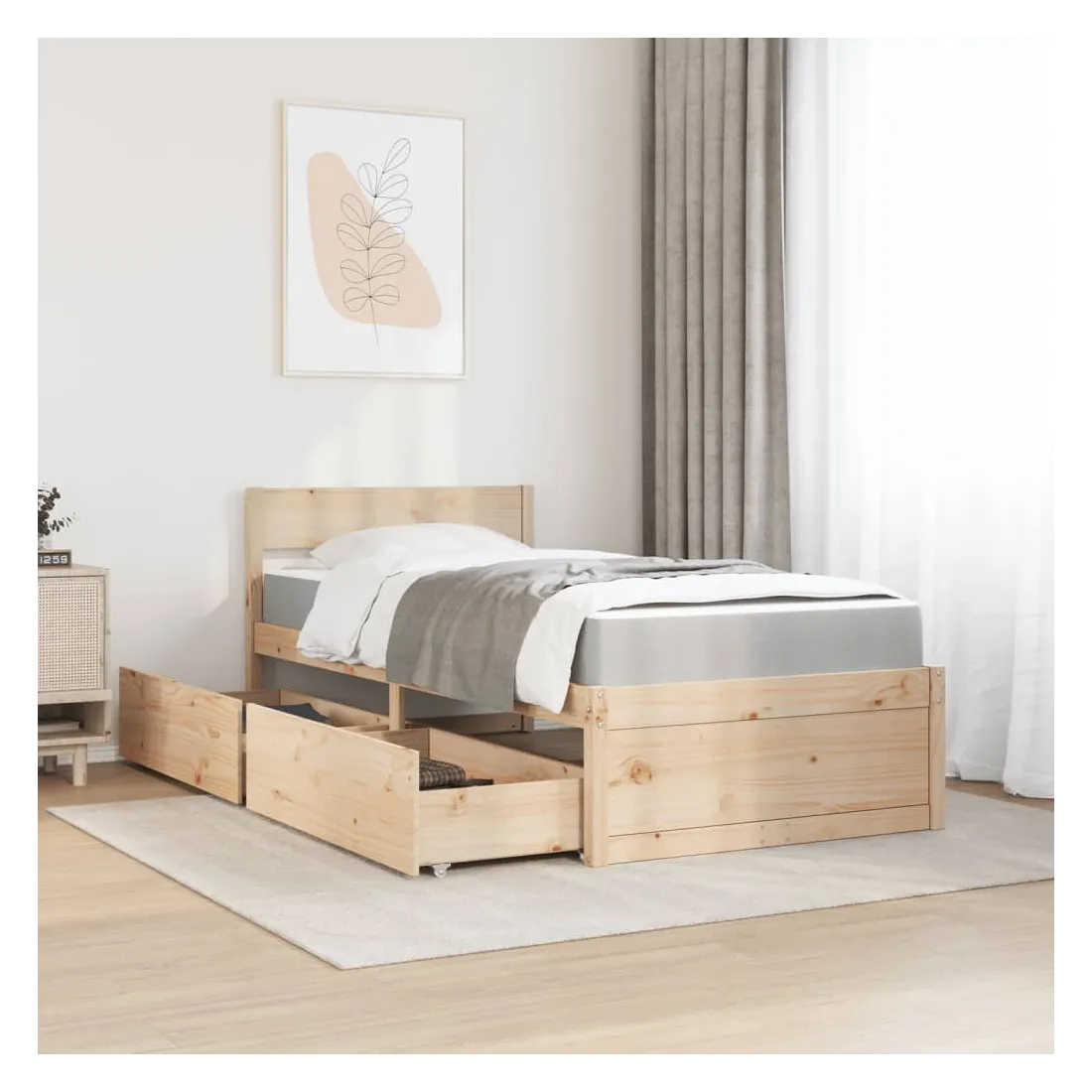 Avec un design simple mais intemporel, ce lit sera un supplément vraiment pratique et décoratif à votre chambre à coucher. Bois de pin massif : le bois de pin massif est un matériau naturel magnifique. Le bois de pin a un grain droit et les nœuds donnent au matériau son aspect caractéristique et rustique.Tissu durable : le tissu présente un aspect simple et épuré, et il est respirant et durable.Matelas à ressorts ensachés : ce matelas à ressorts ensachés comporte des ressorts ensachés individuels qui fonctionnent indépendamment pour offrir un soutien personnalisé en réagissant uniquement à la pression exercée dans chaque zone. Cette conception empêche « l'enroulement » et réduit le transfert de mouvement par rapport aux matelas traditionnels à ressorts ouverts. Chaque ressort ensaché soutient le corps individuellement.Fonction de rangement : les tiroirs de lit inclus offrent suffisamment d'espace de rangement pour ranger vos articles essentiels, gardant votre pièce propre et bien rangée.Lattes pour un soutien optimal : le cadre de lit est complété par des lattes pour offrir un soutien et une respirabilité essentiels à votre matelas. Bon à savoir :Pour des raisons d'hygiène, le matelas ne peut pas être retourné si l'emballage est retiré ou ouvert.