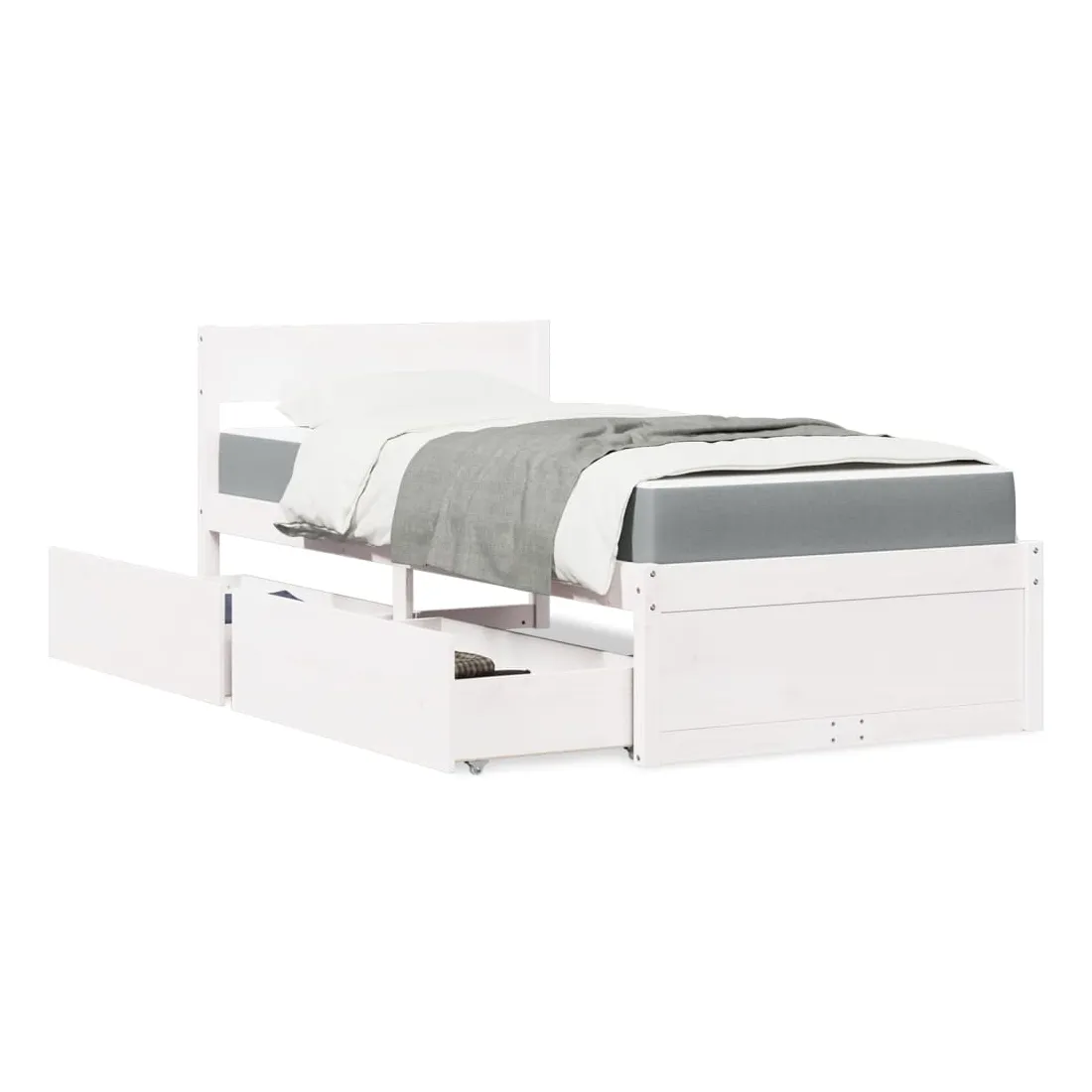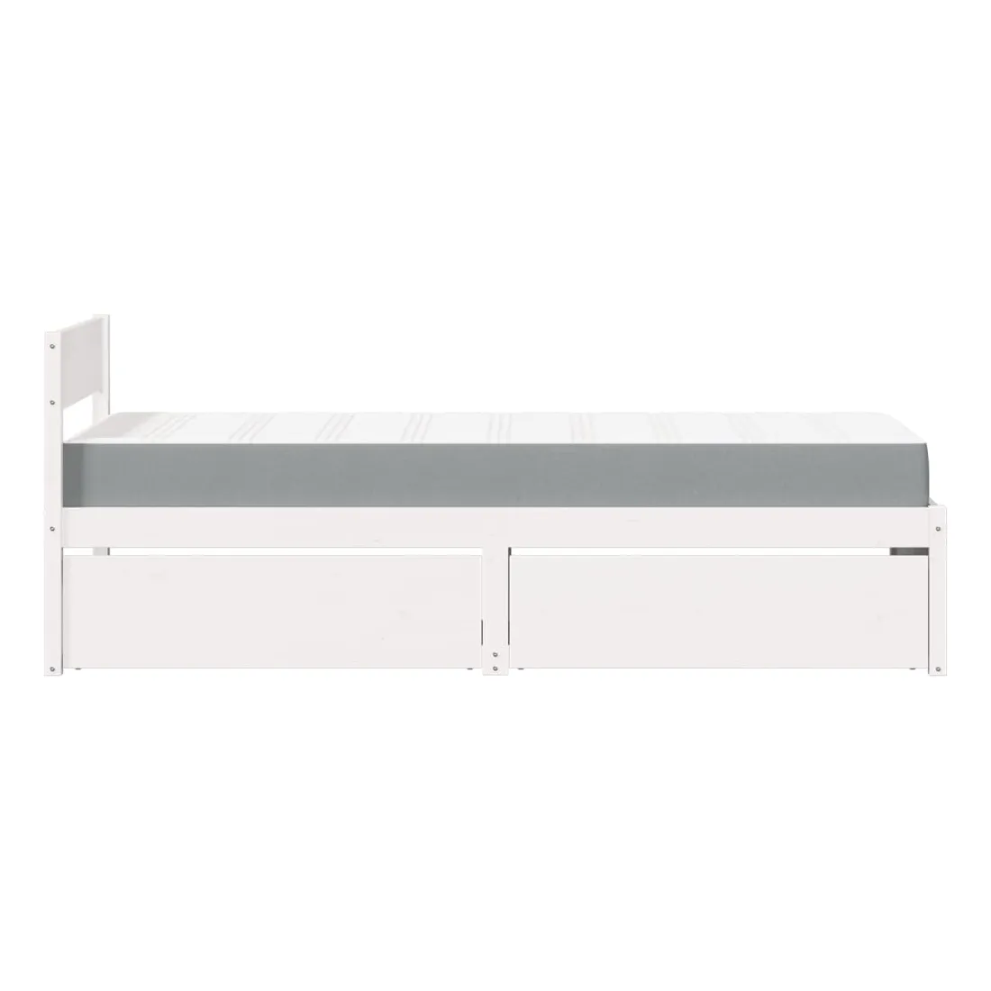 Avec un design simple mais intemporel, ce lit sera un supplément vraiment pratique et décoratif à votre chambre à coucher. Bois de pin massif : le bois de pin massif est un matériau naturel magnifique. Le bois de pin a un grain droit et les nœuds donnent au matériau son aspect caractéristique et rustique.Tissu durable : le tissu présente un aspect simple et épuré, et il est respirant et durable.Matelas à ressorts ensachés : ce matelas à ressorts ensachés comporte des ressorts ensachés individuels qui fonctionnent indépendamment pour offrir un soutien personnalisé en réagissant uniquement à la pression exercée dans chaque zone. Cette conception empêche « l'enroulement » et réduit le transfert de mouvement par rapport aux matelas traditionnels à ressorts ouverts. Chaque ressort ensaché soutient le corps individuellement.Fonction de rangement : les tiroirs de lit inclus offrent suffisamment d'espace de rangement pour ranger vos articles essentiels, gardant votre pièce propre et bien rangée.Lattes pour un soutien optimal : le cadre de lit est complété par des lattes pour offrir un soutien et une respirabilité essentiels à votre matelas. Bon à savoir :Pour des raisons d'hygiène, le matelas ne peut pas être retourné si l'emballage est retiré ou ouvert.