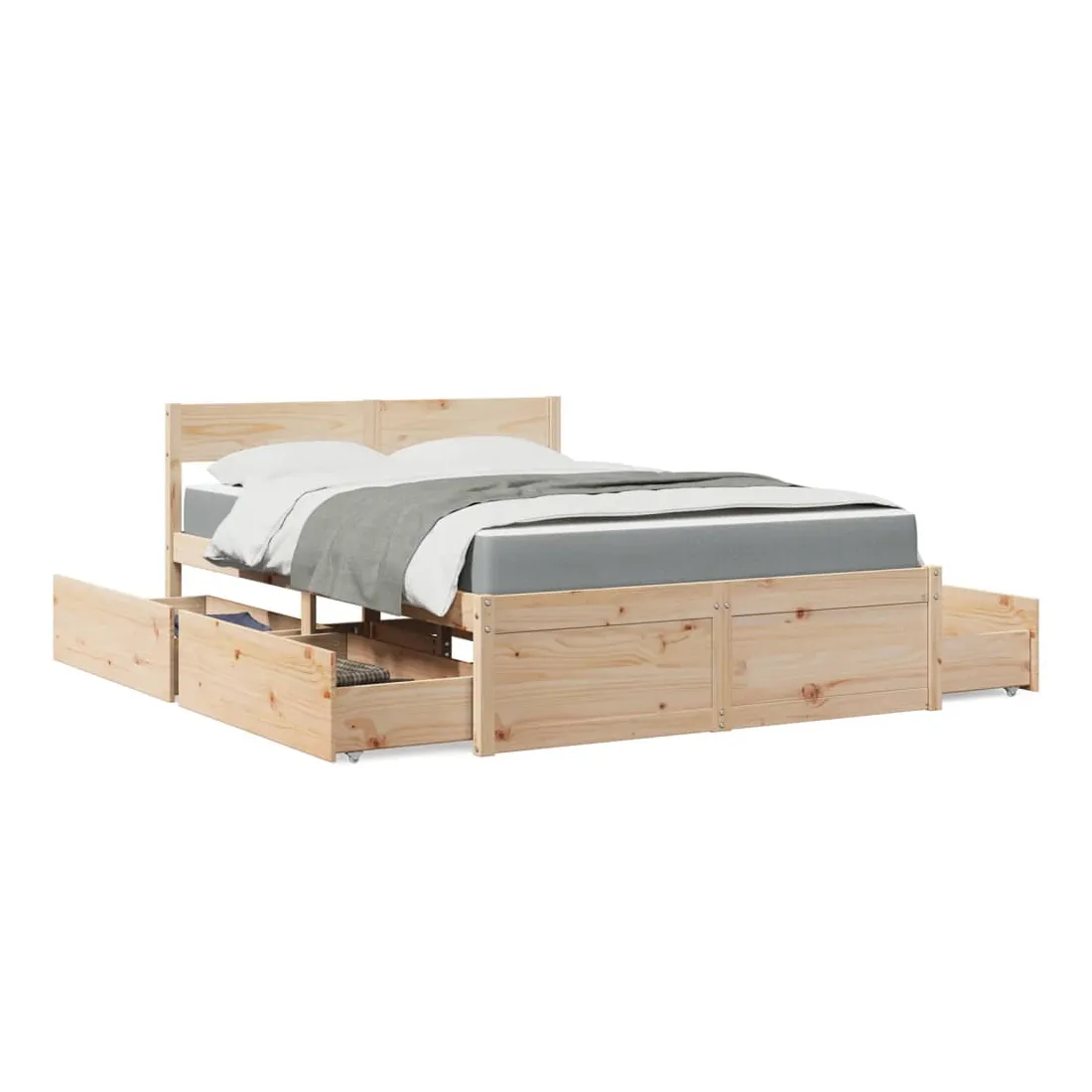 Avec un design simple mais intemporel, ce lit sera un supplément vraiment pratique et décoratif à votre chambre à coucher. Bois de pin massif : le bois de pin massif est un matériau naturel magnifique. Le bois de pin a un grain droit et les nœuds donnent au matériau son aspect caractéristique et rustique.Tissu durable : le tissu présente un aspect simple et épuré, et il est respirant et durable.Matelas à ressorts ensachés : ce matelas à ressorts ensachés comporte des ressorts ensachés individuels qui fonctionnent indépendamment pour offrir un soutien personnalisé en réagissant uniquement à la pression exercée dans chaque zone. Cette conception empêche « l'enroulement » et réduit le transfert de mouvement par rapport aux matelas traditionnels à ressorts ouverts. Chaque ressort ensaché soutient le corps individuellement.Fonction de rangement : les tiroirs de lit inclus offrent suffisamment d'espace de rangement pour ranger vos articles essentiels, gardant votre pièce propre et bien rangée.Lattes pour un soutien optimal : le cadre de lit est complété par des lattes pour offrir un soutien et une respirabilité essentiels à votre matelas. Bon à savoir :Pour des raisons d'hygiène, le matelas ne peut pas être retourné si l'emballage est retiré ou ouvert.
