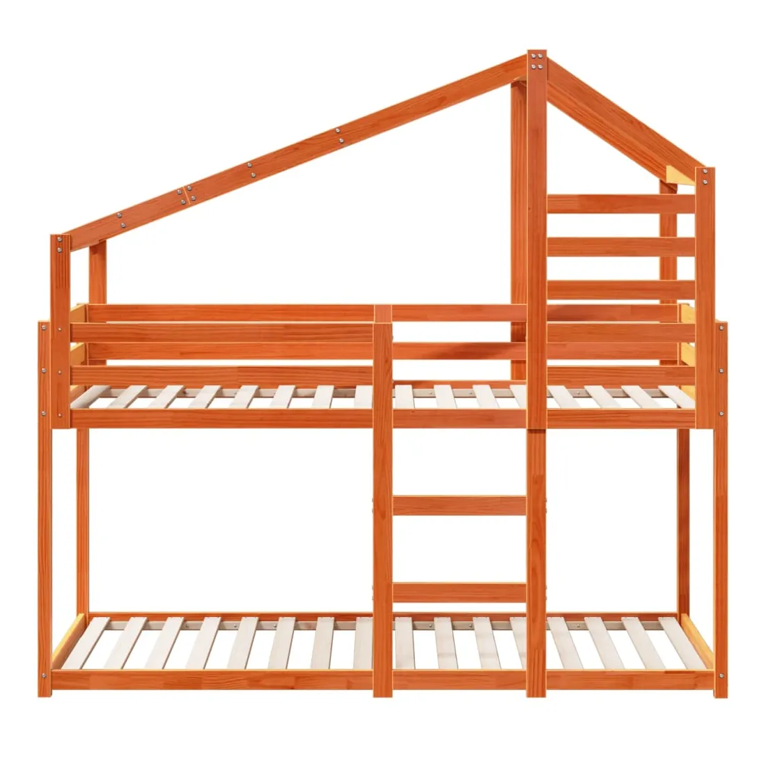 Ce lit superposé pour enfants avec toit est élégant et fonctionnel, ce qui en fait un ajout parfait à toute pièce avec un espace limité. Bois de pin massif : le bois de pin massif est un matériau naturel magnifique. Le bois de pin a un grain droit et les nœuds donnent au matériau son aspect caractéristique et rustique.Design sûr : le lit surélevé est conçu dans un souci de sécurité. Il comprend des garde-corps qui empêchent l'utilisateur de rouler pendant son sommeil.Lattes de contreplaqué : les lattes de contreplaqué assurent une bonne répartition du poids, garantissant que le matelas reste en place à chaque torsion de votre corps pendant le sommeil.Très amusant : en combinant le toit avec le lit de votre enfant, vous pouvez créer une cachette qui permettra à votre enfant de s'amuser à l'heure du coucher. Cette addition innovante non seulement sera un point focal passionnant, mais aussi apportera de la fantaisie et de l'amusement dans la chambre d'enfant.Convient aux espaces limités : le cadre de lit est un excellent choix pour toute pièce dont l'espace est limité, il fournit deux lits individuels avec un design compact.Porte latérale ouverte : le toit est doté d'une porte latérale ouverte qui permet à vos enfants d'entrer et de sortir facilement du lit. Bon à savoir :Un matelas n'est pas inclus avec ce lit. Nous offrons une sélection variée de matelas. Vous pouvez consulter notre boutique pour trouver un matelas assorti.