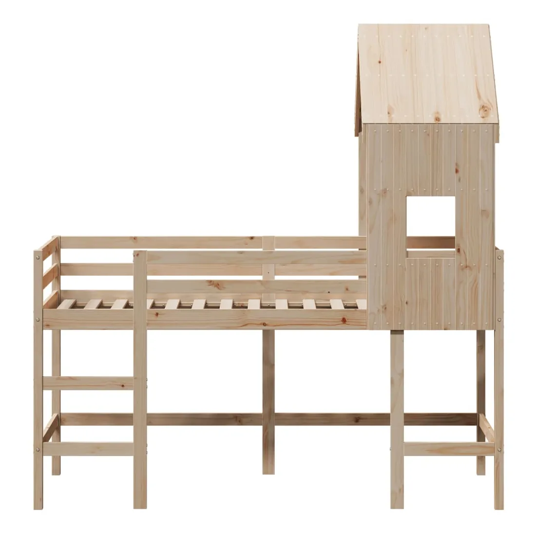 Ce lit mezzanine pour enfants a été fabriqué en pin massif et est conçu pour recevoir et optimiser l'espace. Bois de pin massif : le bois de pin massif est un matériau naturel magnifique. Le bois de pin a un grain droit et les nœuds donnent au matériau son aspect caractéristique et rustique.Utilisation complète de l'espace : ce lit mezzanine simple est surélevé de 78,5 cm au-dessus du sol, offrant suffisamment d'espace en dessous pour le rangement ou d'autres activités. Cet espace peut être utilisé pour empiler des boîtes de rangement, ranger de gros jouets ou même placer un canapé pour enfants pour lire. De plus, votre enfant peut utiliser l'espace sous le cadre de lit en bois comme base secrète et profiter de jeux imaginatifs.Barrières de sécurité : le lit mezzanine pour enfants est équipé de garde-corps de sécurité sur les 4 côtés, afin que votre enfant puisse dormir sans craindre de tomber.Échelle pratique : ce lit mezzanine pour enfants est doté d'une échelle qui permet de monter et de descendre dans et du lit en toute simplicité. Elle apporte également de la joie et transforme leur chambre en terrain de jeu intérieur.Porte latérale ouverte : le toit est doté d'une porte latérale ouverte qui permet à vos enfants d'entrer et de sortir facilement du lit. Bon à savoir :Un matelas n'est pas inclus avec ce lit. Nous offrons une sélection variée de matelas. Vous pouvez consulter notre boutique pour trouver un matelas assorti. Attention :Pour éviter qu'il ne bascule, ce produit doit être utilisé avec le dispositif de fixation murale fourni.