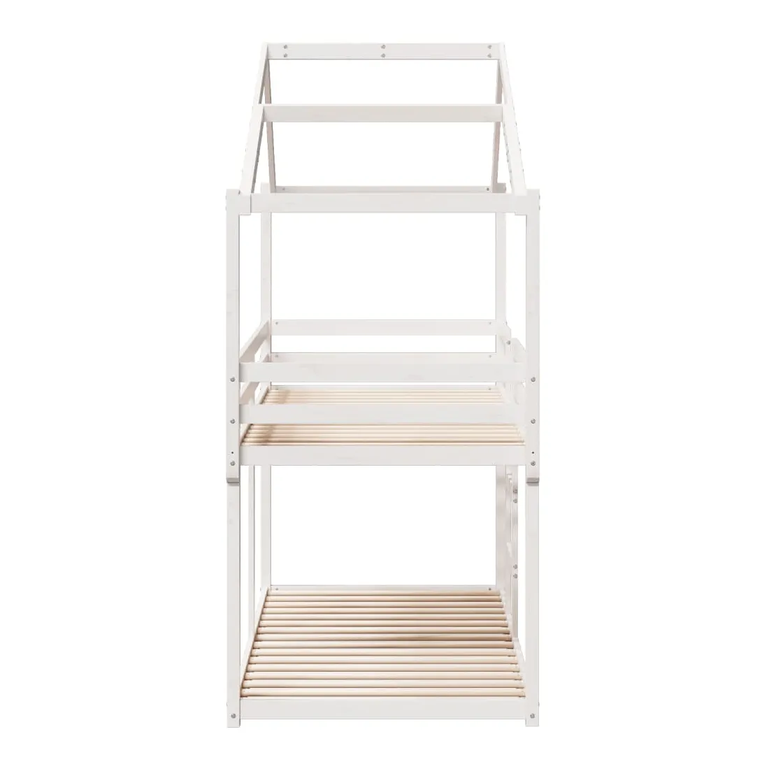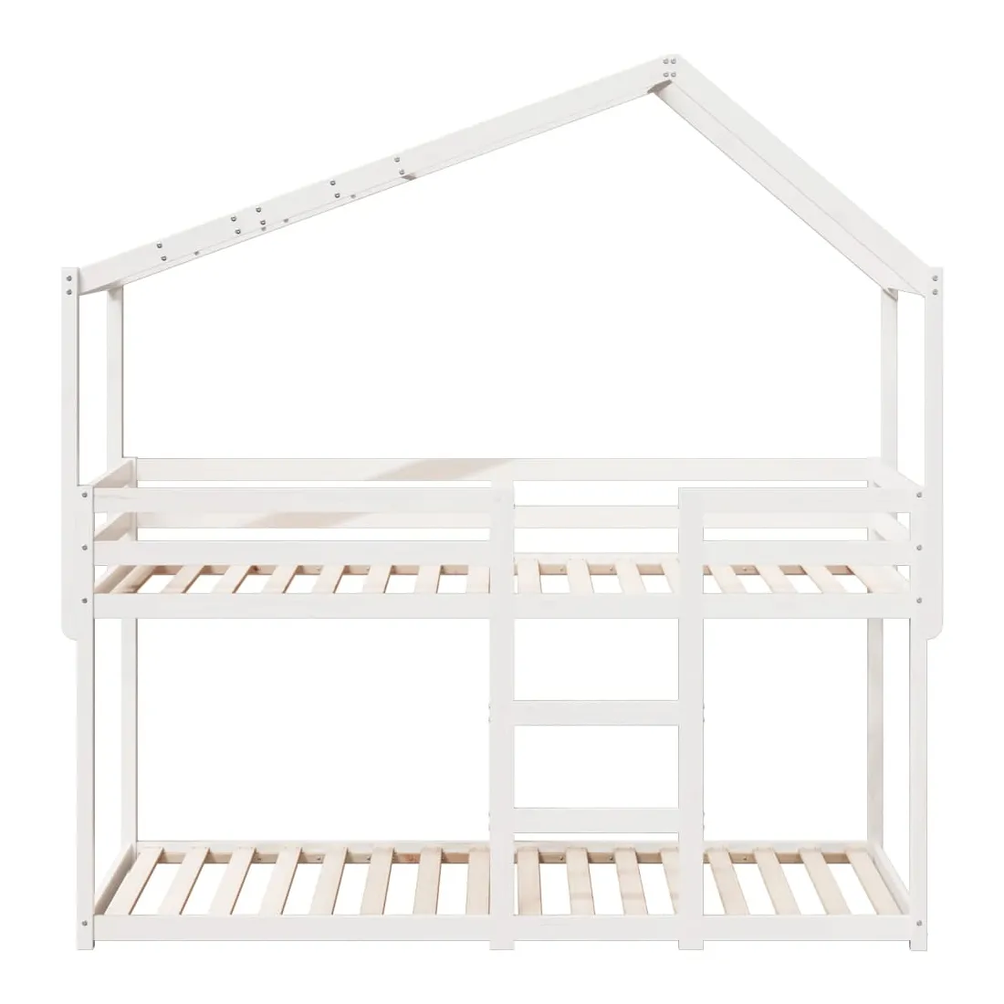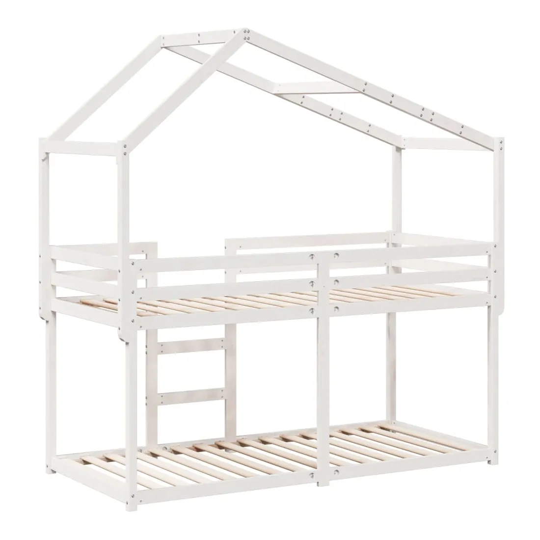 Ce lit superposé pour enfants avec toit est élégant et fonctionnel, ce qui en fait un ajout parfait à toute pièce avec un espace limité. Bois de pin massif : le bois de pin massif est un matériau naturel magnifique. Le bois de pin a un grain droit et les nœuds donnent au matériau son aspect caractéristique et rustique.Design sûr : le lit surélevé est conçu dans un souci de sécurité. Il comprend des garde-corps qui empêchent l'utilisateur de rouler pendant son sommeil.Lattes de contreplaqué : les lattes de contreplaqué assurent une bonne répartition du poids, garantissant que le matelas reste en place à chaque torsion de votre corps pendant le sommeil.Très amusant : en combinant le toit avec le lit de votre enfant, vous pouvez créer une cachette qui permettra à votre enfant de s'amuser à l'heure du coucher. Cette addition innovante non seulement sera un point focal passionnant, mais aussi apportera de la fantaisie et de l'amusement dans la chambre d'enfant.Convient aux espaces limités : le cadre de lit est un excellent choix pour toute pièce dont l'espace est limité, il fournit deux lits individuels avec un design compact.Porte latérale ouverte : le toit est doté d'une porte latérale ouverte qui permet à vos enfants d'entrer et de sortir facilement du lit. Bon à savoir :Un matelas n'est pas inclus avec ce lit. Nous offrons une sélection variée de matelas. Vous pouvez consulter notre boutique pour trouver un matelas assorti.