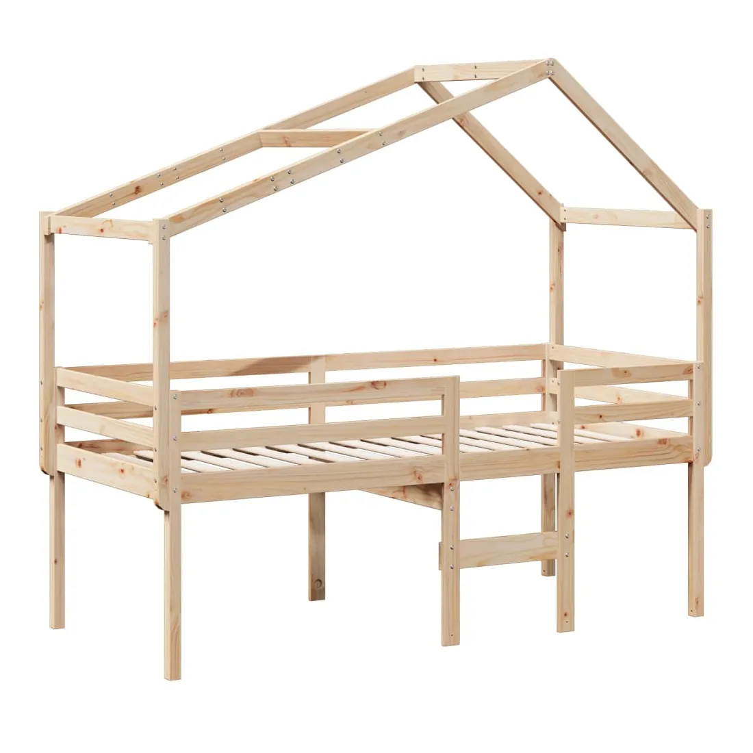 Ce lit haut, dont la polyvalence est au cœur de son design, est une combinaison parfaite de style moderne et élégant et de praticité. Il est idéal pour les petites pièces. Bois de pin massif : le bois de pin massif est un matériau naturel magnifique. Le bois de pin a un grain droit et les nœuds donnent au matériau son aspect caractéristique et rustique.Fonction pratique : le lit surélevé offre un excellent moyen d'utiliser l'espace au sol dans la chambre de votre enfant, vous pouvez le combiner avec un rideau de jeu cool, un matelas de jeu et un panneau d'abri comme un coin de jeu ou utiliser la zone en dessous pour le stockage. Les lattes en contreplaqué offrent un soutien supplémentaire à votre lit. Elles prolongent la durée de vie de votre matelas en absorbant la majeure partie de la tension et du poids du lit.Design sûr : l'échelle intégrée du lit surélevé facilite l'entrée et la sortie du lit, et les garde-corps garantissent la sécurité de vos jeunes pendant qu'ils dorment.Très amusant : en combinant le toit avec le lit de votre enfant, vous pouvez créer une cachette qui permettra à votre enfant de s'amuser à l'heure du coucher. Cette addition innovante non seulement sera un point focal passionnant, mais aussi apportera de la fantaisie et de l'amusement dans la chambre d'enfant.Porte latérale ouverte : le toit est doté d'une porte latérale ouverte qui permet à vos enfants d'entrer et de sortir facilement du lit. Bon à savoir :Un matelas n'est pas inclus avec ce lit. Nous offrons une sélection variée de matelas. Vous pouvez consulter notre boutique pour trouver un matelas assorti.