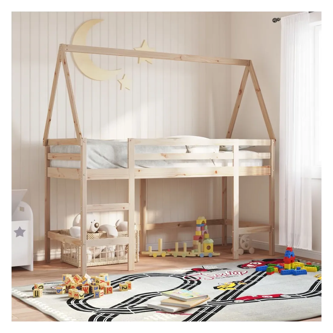 Ce lit mezzanine pour enfants a été fabriqué en pin massif et est conçu pour recevoir et optimiser l'espace. Bois de pin massif : le bois de pin massif est un matériau naturel magnifique. Le bois de pin a un grain droit et les nœuds donnent au matériau son aspect caractéristique et rustique.Utilisation complète de l'espace : ce lit mezzanine simple est surélevé de 78,5 cm au-dessus du sol, offrant suffisamment d'espace en dessous pour le rangement ou d'autres activités. Cet espace peut être utilisé pour empiler des boîtes de rangement, ranger de gros jouets ou même placer un canapé pour enfants pour lire. De plus, votre enfant peut utiliser l'espace sous le cadre de lit en bois comme base secrète et profiter de jeux imaginatifs.Barrières de sécurité : le lit mezzanine pour enfants est équipé de garde-corps de sécurité sur les 4 côtés, afin que votre enfant puisse dormir sans craindre de tomber.Échelle pratique : ce lit mezzanine pour enfants est doté d'une échelle qui permet de monter et de descendre dans et du lit en toute simplicité. Elle apporte également de la joie et transforme leur chambre en terrain de jeu intérieur.Porte latérale ouverte : le toit est doté d'une porte latérale ouverte qui permet à vos enfants d'entrer et de sortir facilement du lit. Bon à savoir :Un matelas n'est pas inclus avec ce lit. Nous offrons une sélection variée de matelas. Vous pouvez consulter notre boutique pour trouver un matelas assorti. Attention :Pour éviter qu'il ne bascule, ce produit doit être utilisé avec le dispositif de fixation murale fourni.