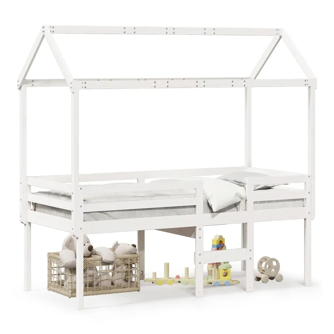 vidaXLCe lit mezzanine, dont la polyvalence est au cœur de sa conception, allie à la perfection style moderne et fonctionnalité. Il est idéal pour les petites chambres. Bois de pin massif : Le bois de pin massif est un magnifique matériau naturel. Son grain droit et ses nœuds lui confèrent un aspect rustique caractéristique.Fonctionnalité pratique : Le lit mezzanine permet d'optimiser l'espace au sol. Vous pouvez l'associer à un rideau de jeu, un matelas de jeu et un panneau de rangement pour créer un coin jeux, ou utiliser l'espace en dessous pour ranger des affaires. Les lattes en contreplaqué offrent un soutien supplémentaire au matelas et prolongent sa durée de vie en absorbant la majeure partie des contraintes et du poids.Sécurité garantie : L'échelle intégrée facilite l'accès au lit, et les barrières de sécurité assurent la sécurité pendant le sommeil.Un espace ludique : En combinant le toit avec le lit, vous pouvez créer une véritable cachette. Cet ajout novateur ne sera pas seulement un point focal captivant, mais apportera également émerveillement et enthousiasme à la chambre.Porte latérale ouverte : Le toit est doté d'une porte latérale ouverte, facilitant l'accès au lit. Bon à savoir :Le matelas n'est pas inclus avec ce lit. Nous proposons une large sélection de matelas. Vous pouvez consulter notre boutique pour trouver un matelas assorti.