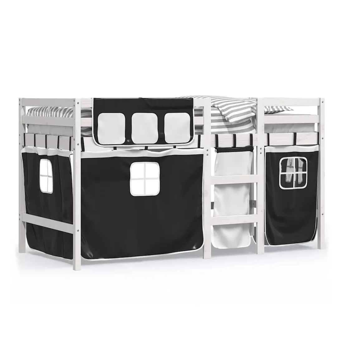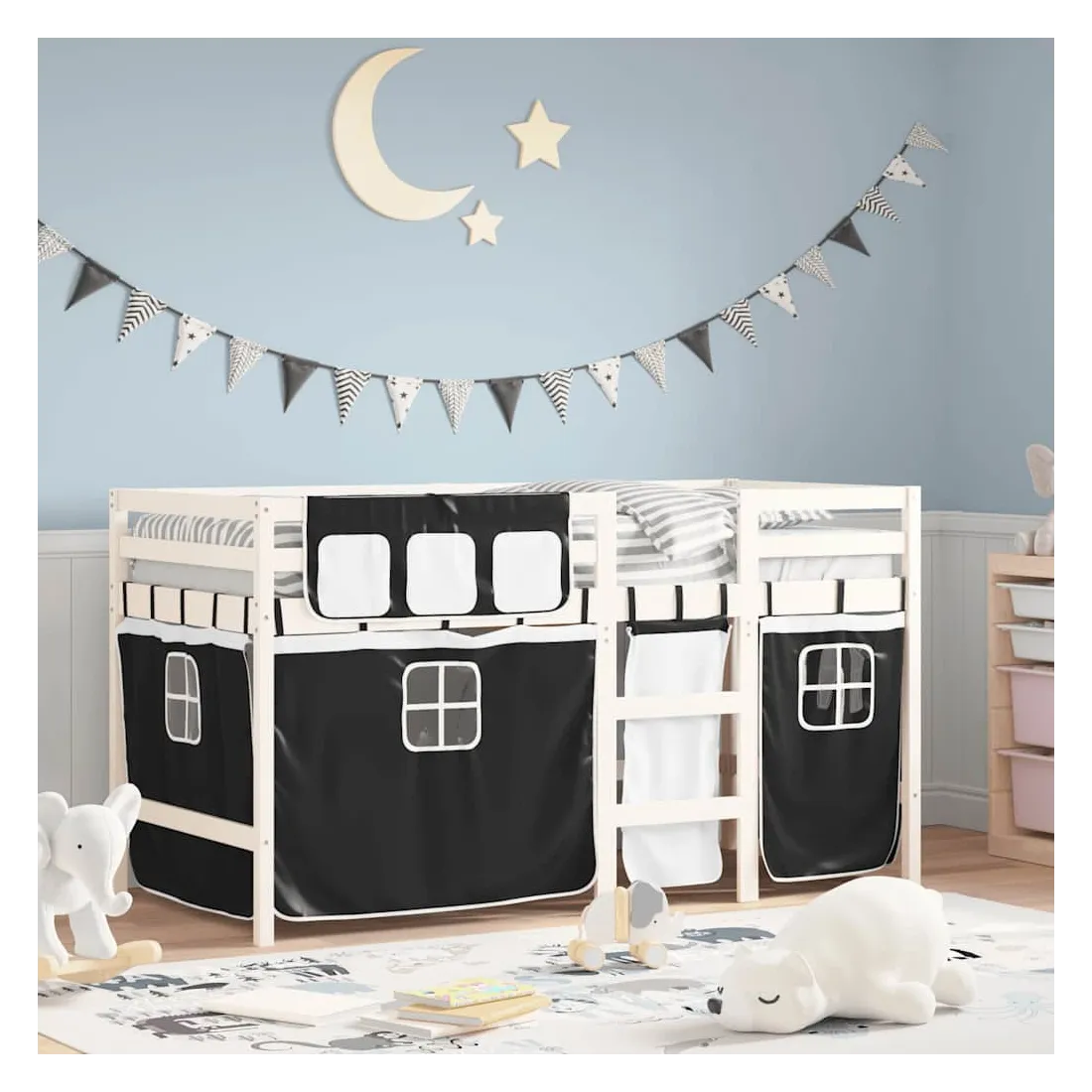 Ce lit mezzanine pour enfants a été fabriqué en pin massif et est conçu pour recevoir et optimiser l'espace. Construction en bois stable : ce lit intermédiaire est fabriqué en bois de pin massif pour plus de stabilité et de durabilité. Le bois de pin a un grain droit et les nœuds donnent au matériau son aspect rustique caractéristique.Utilisation complète de l'espace : ce lit mezzanine simple est surélevé de 78,5 cm au-dessus du sol, offrant suffisamment d'espace en dessous pour le rangement ou d'autres activités. Cet espace peut être utilisé pour empiler des boîtes de rangement, ranger de gros jouets ou même placer un canapé pour enfants pour lire. De plus, votre enfant peut utiliser l'espace sous le cadre de lit en bois comme base secrète et profiter de jeux imaginatifs.Barrières de sécurité : le lit mezzanine pour enfants est équipé de garde-corps de sécurité sur les 4 côtés, afin que votre enfant puisse dormir sans craindre de tomber.Échelle pratique : ce lit mezzanine pour enfants est doté d'une échelle qui permet de monter et de descendre dans et du lit en toute simplicité. Elle apporte également de la joie et transforme leur chambre en terrain de jeu intérieur. Bon à savoir :Un matelas n'est pas inclus avec ce lit. Nous offrons une sélection variée de matelas. Vous pouvez consulter notre boutique pour trouver un matelas assorti. Attention :Pour éviter qu'il ne bascule, ce produit doit être utilisé avec le dispositif de fixation murale fourni.