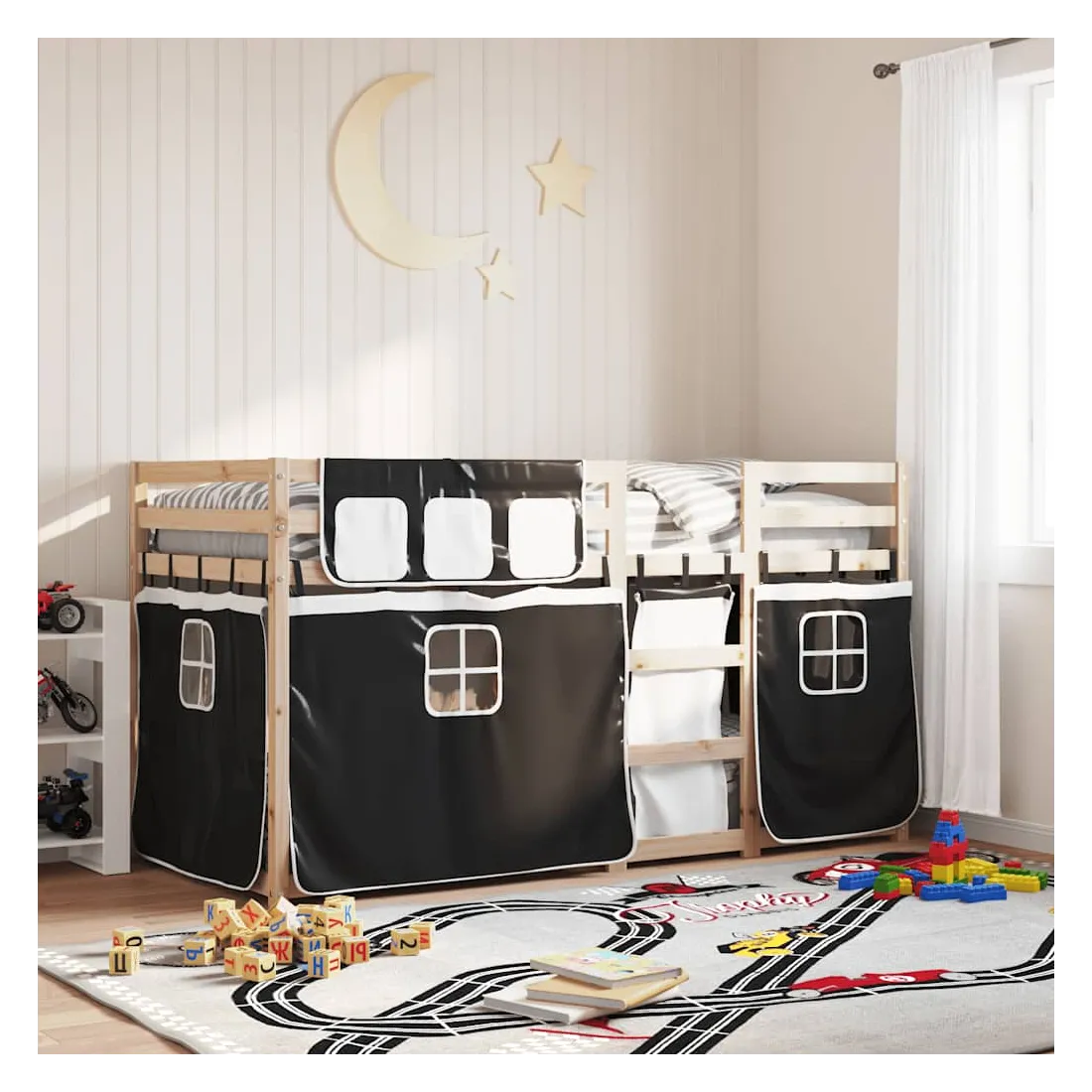 Ce lit superposé en bois est élégant et fonctionnel, ce qui en fait un supplément parfait à toute pièce dont l'espace est limité. Bois de pin massif : ce lit superposé est fabriqué en bois de pin massif pour plus de stabilité et de durabilité. Le bois de pin a un grain droit et les nœuds donnent au matériau son aspect rustique caractéristique.Très amusant : vous pouvez combiner les rideaux avec le lit superposé bas pour créer la base secrète de votre enfant, ce qui permet de s’amuser à l’heure du coucher et d’ajouter un point d'intérêt à la chambre à coucher !Barrières de sécurité : le lit supérieur est équipé de garde-corps de sécurité sur les 4 côtés, afin que votre enfant puisse dormir sans craindre de tomber.Échelle pratique : ce lit superposé double est doté d'une échelle qui permet de monter et de descendre dans et du lit en toute simplicité. Elle apporte également de la joie et transforme leur chambre en terrain de jeu intérieur. Bon à savoir :Un matelas n'est pas inclus avec ce lit. Nous offrons une sélection variée de matelas. Vous pouvez consulter notre boutique pour trouver un matelas assorti. Attention :Pour éviter qu'il ne bascule, ce produit doit être utilisé avec le dispositif de fixation murale fourni.