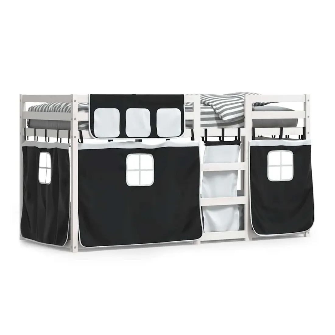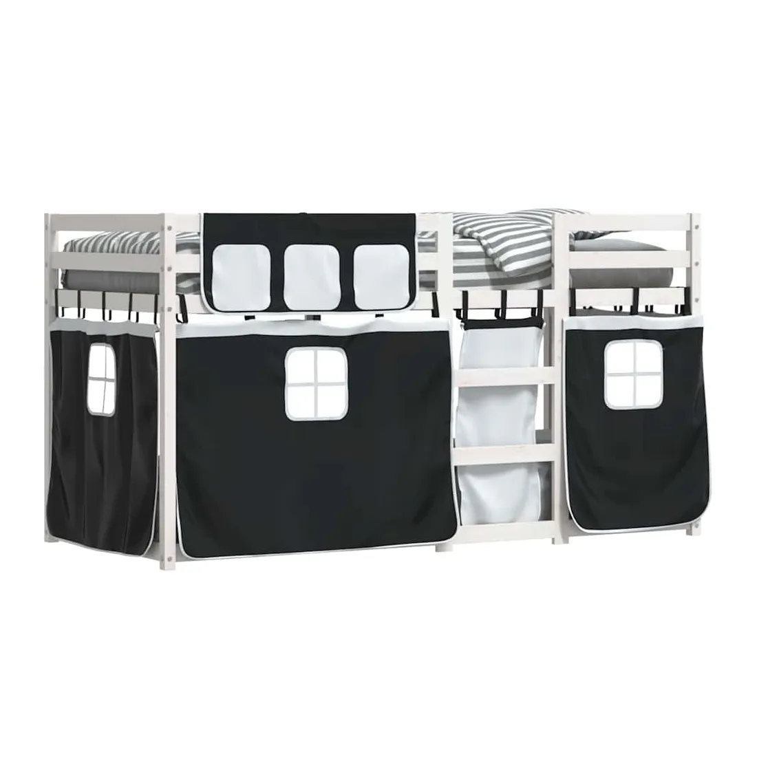 Ce lit superposé en bois est élégant et fonctionnel, ce qui en fait un supplément parfait à toute pièce dont l'espace est limité. Bois de pin massif : ce lit superposé est fabriqué en bois de pin massif pour plus de stabilité et de durabilité. Le bois de pin a un grain droit et les nœuds donnent au matériau son aspect rustique caractéristique.Très amusant : vous pouvez combiner les rideaux avec le lit superposé bas pour créer la base secrète de votre enfant, ce qui permet de s’amuser à l’heure du coucher et d’ajouter un point d'intérêt à la chambre à coucher !Barrières de sécurité : le lit supérieur est équipé de garde-corps de sécurité sur les 4 côtés, afin que votre enfant puisse dormir sans craindre de tomber.Échelle pratique : ce lit superposé double est doté d'une échelle qui permet de monter et de descendre dans et du lit en toute simplicité. Elle apporte également de la joie et transforme leur chambre en terrain de jeu intérieur. Bon à savoir :Un matelas n'est pas inclus avec ce lit. Nous offrons une sélection variée de matelas. Vous pouvez consulter notre boutique pour trouver un matelas assorti. Attention :Pour éviter qu'il ne bascule, ce produit doit être utilisé avec le dispositif de fixation murale fourni.