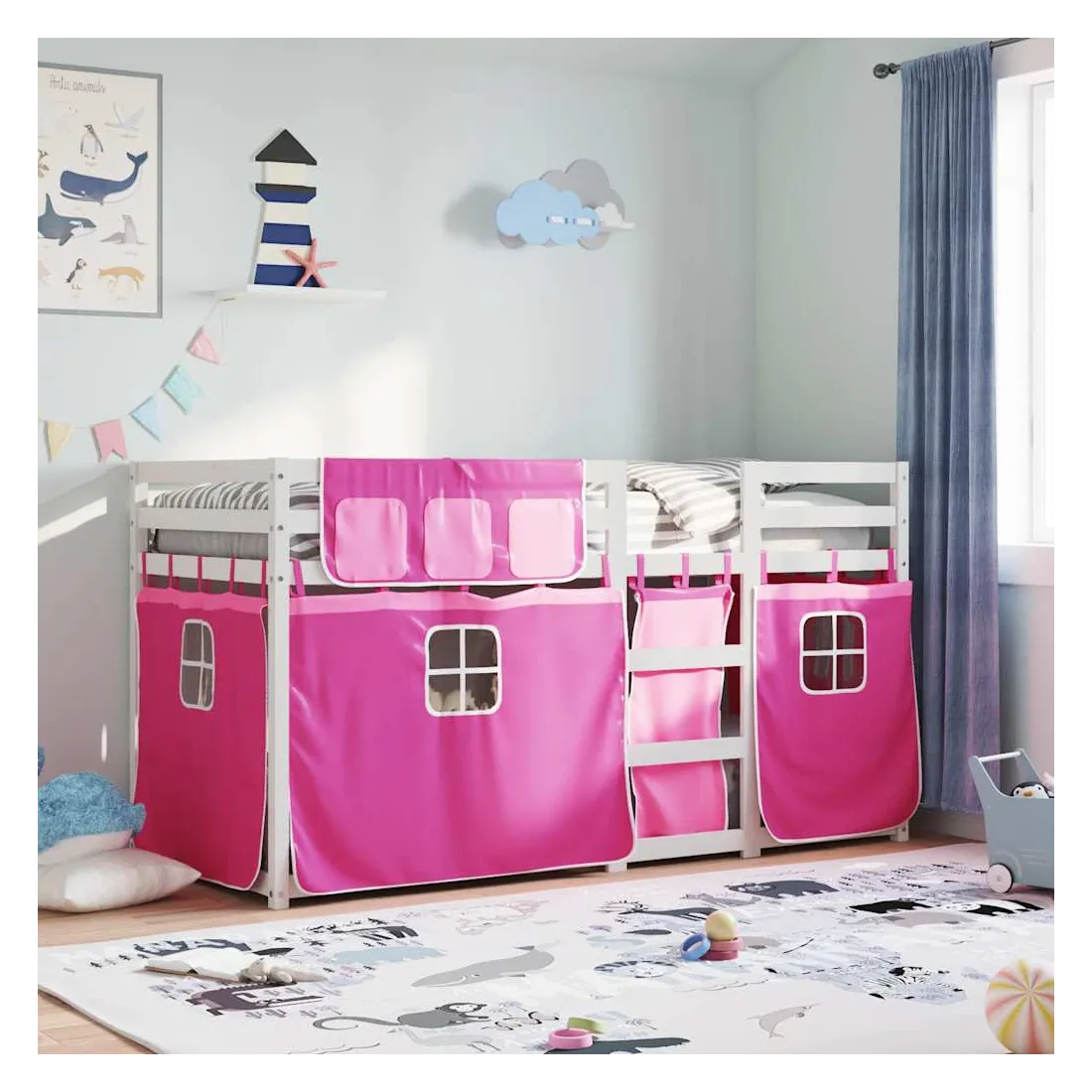 Ce lit superposé en bois est élégant et fonctionnel, ce qui en fait un supplément parfait à toute pièce dont l'espace est limité. Bois de pin massif : ce lit superposé est fabriqué en bois de pin massif pour plus de stabilité et de durabilité. Le bois de pin a un grain droit et les nœuds donnent au matériau son aspect rustique caractéristique.Très amusant : vous pouvez combiner les rideaux avec le lit superposé bas pour créer la base secrète de votre enfant, ce qui permet de s’amuser à l’heure du coucher et d’ajouter un point d'intérêt à la chambre à coucher !Barrières de sécurité : le lit supérieur est équipé de garde-corps de sécurité sur les 4 côtés, afin que votre enfant puisse dormir sans craindre de tomber.Échelle pratique : ce lit superposé double est doté d'une échelle qui permet de monter et de descendre dans et du lit en toute simplicité. Elle apporte également de la joie et transforme leur chambre en terrain de jeu intérieur. Bon à savoir :Un matelas n'est pas inclus avec ce lit. Nous offrons une sélection variée de matelas. Vous pouvez consulter notre boutique pour trouver un matelas assorti. Attention :Pour éviter qu'il ne bascule, ce produit doit être utilisé avec le dispositif de fixation murale fourni.