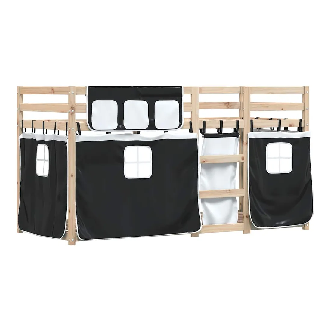 Ce lit superposé en bois est élégant et fonctionnel, ce qui en fait un supplément parfait à toute pièce dont l'espace est limité. Bois de pin massif : ce lit superposé est fabriqué en bois de pin massif pour plus de stabilité et de durabilité. Le bois de pin a un grain droit et les nœuds donnent au matériau son aspect rustique caractéristique.Très amusant : vous pouvez combiner les rideaux avec le lit superposé bas pour créer la base secrète de votre enfant, ce qui permet de s’amuser à l’heure du coucher et d’ajouter un point d'intérêt à la chambre à coucher !Barrières de sécurité : le lit supérieur est équipé de garde-corps de sécurité sur les 4 côtés, afin que votre enfant puisse dormir sans craindre de tomber.Échelle pratique : ce lit superposé double est doté d'une échelle qui permet de monter et de descendre dans et du lit en toute simplicité. Elle apporte également de la joie et transforme leur chambre en terrain de jeu intérieur. Bon à savoir :Un matelas n'est pas inclus avec ce lit. Nous offrons une sélection variée de matelas. Vous pouvez consulter notre boutique pour trouver un matelas assorti. Attention :Pour éviter qu'il ne bascule, ce produit doit être utilisé avec le dispositif de fixation murale fourni.