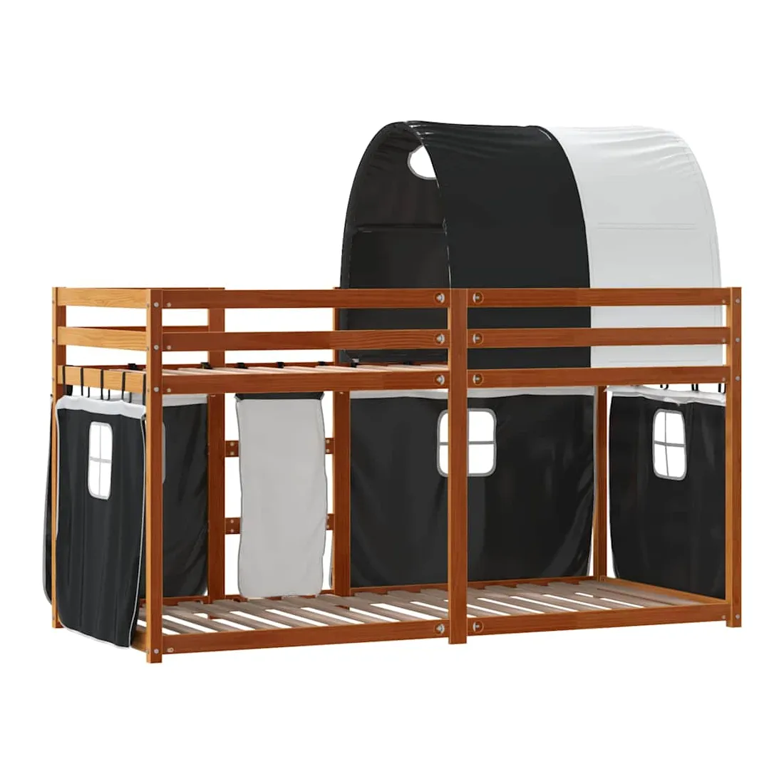 Ce lit superposé en bois est élégant et fonctionnel, ce qui en fait un supplément parfait à toute pièce dont l'espace est limité. Bois de pin massif : ce lit superposé est fabriqué en bois de pin massif pour plus de stabilité et de durabilité. Le bois de pin a un grain droit et les nœuds donnent au matériau son aspect rustique caractéristique.Très amusant : vous pouvez combiner les rideaux avec le lit superposé bas pour créer la base secrète de votre enfant, ce qui permet de s’amuser à l’heure du coucher et d’ajouter un point d'intérêt à la chambre à coucher !Barrières de sécurité : le lit supérieur est équipé de garde-corps de sécurité sur les 4 côtés, afin que votre enfant puisse dormir sans craindre de tomber.Échelle pratique : ce lit superposé double est doté d'une échelle qui permet de monter et de descendre dans et du lit en toute simplicité. Elle apporte également de la joie et transforme leur chambre en terrain de jeu intérieur. Bon à savoir :Un matelas n'est pas inclus avec ce lit. Nous offrons une sélection variée de matelas. Vous pouvez consulter notre boutique pour trouver un matelas assorti. Attention :Pour éviter qu'il ne bascule, ce produit doit être utilisé avec le dispositif de fixation murale fourni.