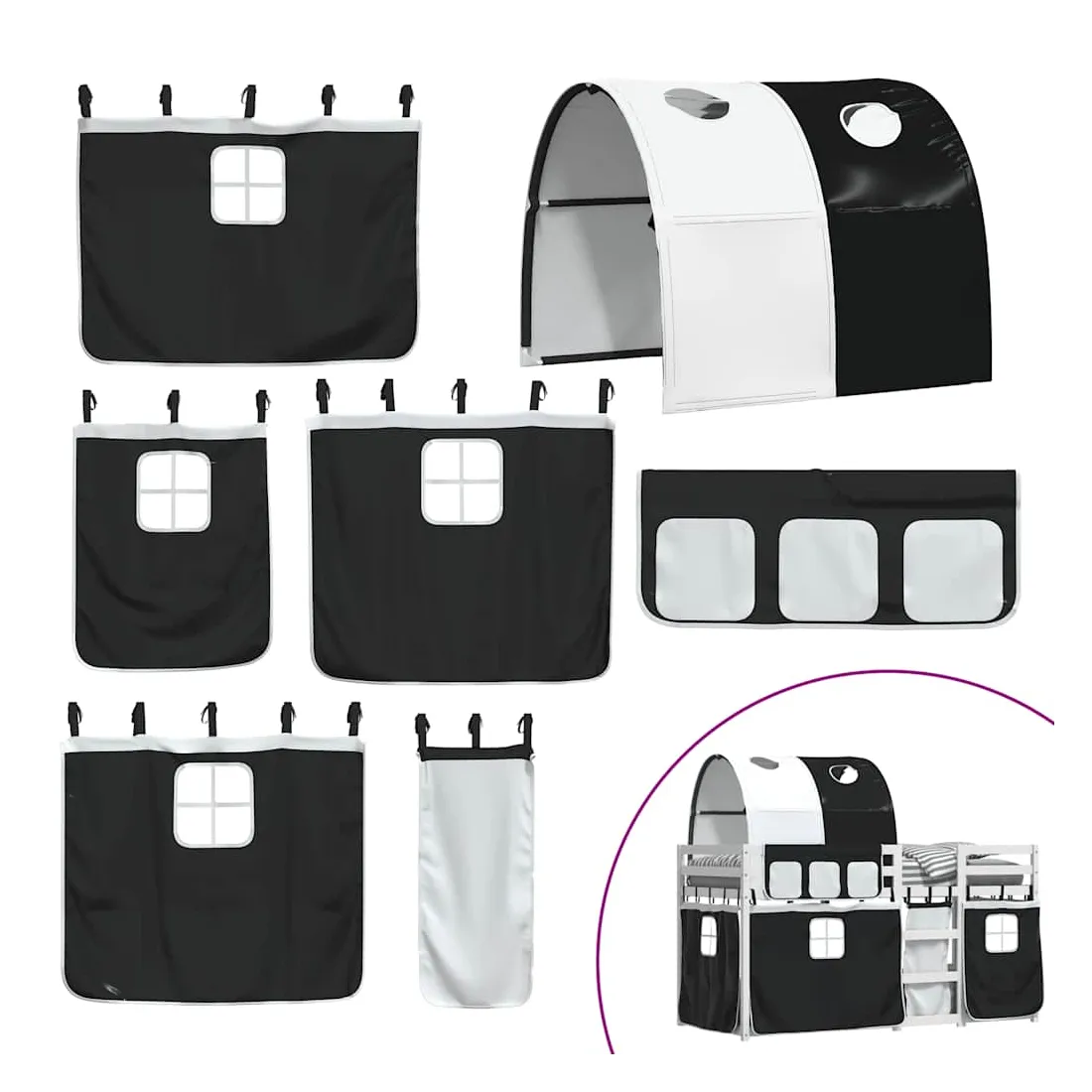 Ce lit superposé en bois est élégant et fonctionnel, ce qui en fait un supplément parfait à toute pièce dont l'espace est limité. Bois de pin massif : ce lit superposé est fabriqué en bois de pin massif pour plus de stabilité et de durabilité. Le bois de pin a un grain droit et les nœuds donnent au matériau son aspect rustique caractéristique.Très amusant : vous pouvez combiner les rideaux avec le lit superposé bas pour créer la base secrète de votre enfant, ce qui permet de s’amuser à l’heure du coucher et d’ajouter un point d'intérêt à la chambre à coucher !Barrières de sécurité : le lit supérieur est équipé de garde-corps de sécurité sur les 4 côtés, afin que votre enfant puisse dormir sans craindre de tomber.Échelle pratique : ce lit superposé double est doté d'une échelle qui permet de monter et de descendre dans et du lit en toute simplicité. Elle apporte également de la joie et transforme leur chambre en terrain de jeu intérieur. Bon à savoir :Un matelas n'est pas inclus avec ce lit. Nous offrons une sélection variée de matelas. Vous pouvez consulter notre boutique pour trouver un matelas assorti. Attention :Pour éviter qu'il ne bascule, ce produit doit être utilisé avec le dispositif de fixation murale fourni.
