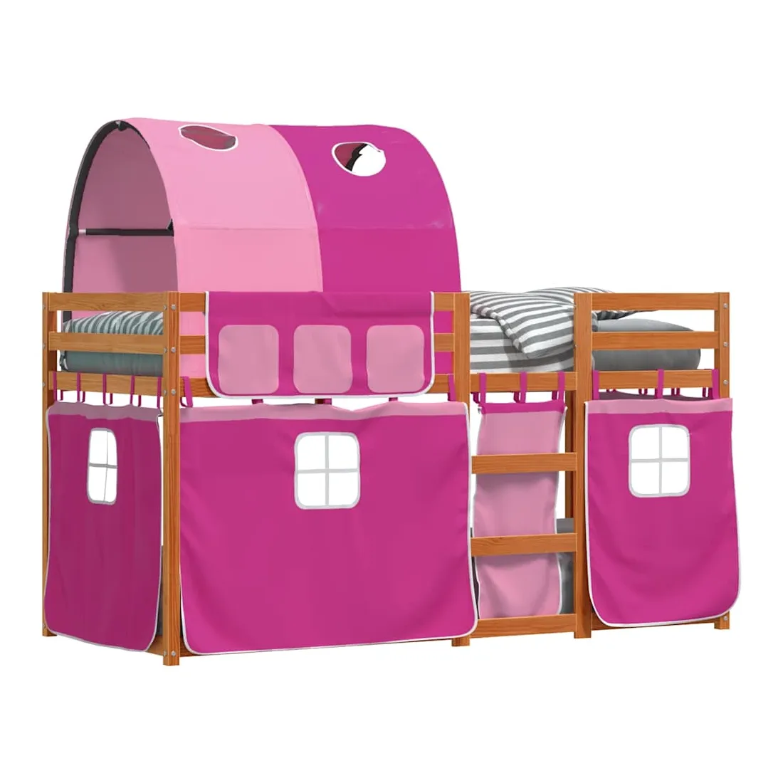 Ce lit superposé en bois est élégant et fonctionnel, ce qui en fait un supplément parfait à toute pièce dont l'espace est limité. Bois de pin massif : ce lit superposé est fabriqué en bois de pin massif pour plus de stabilité et de durabilité. Le bois de pin a un grain droit et les nœuds donnent au matériau son aspect rustique caractéristique.Très amusant : vous pouvez combiner les rideaux avec le lit superposé bas pour créer la base secrète de votre enfant, ce qui permet de s’amuser à l’heure du coucher et d’ajouter un point d'intérêt à la chambre à coucher !Barrières de sécurité : le lit supérieur est équipé de garde-corps de sécurité sur les 4 côtés, afin que votre enfant puisse dormir sans craindre de tomber.Échelle pratique : ce lit superposé double est doté d'une échelle qui permet de monter et de descendre dans et du lit en toute simplicité. Elle apporte également de la joie et transforme leur chambre en terrain de jeu intérieur. Bon à savoir :Un matelas n'est pas inclus avec ce lit. Nous offrons une sélection variée de matelas. Vous pouvez consulter notre boutique pour trouver un matelas assorti. Attention :Pour éviter qu'il ne bascule, ce produit doit être utilisé avec le dispositif de fixation murale fourni.