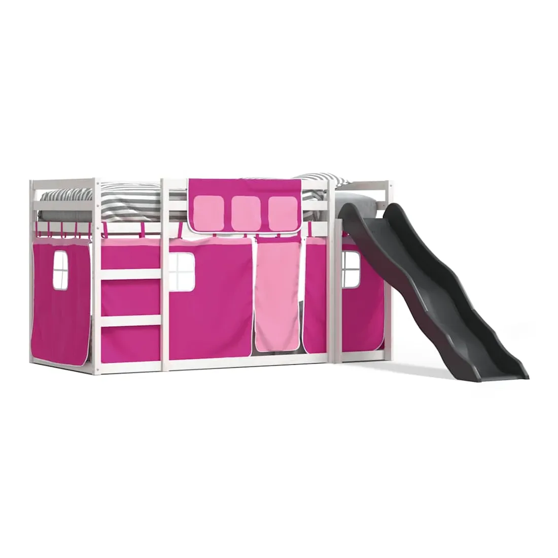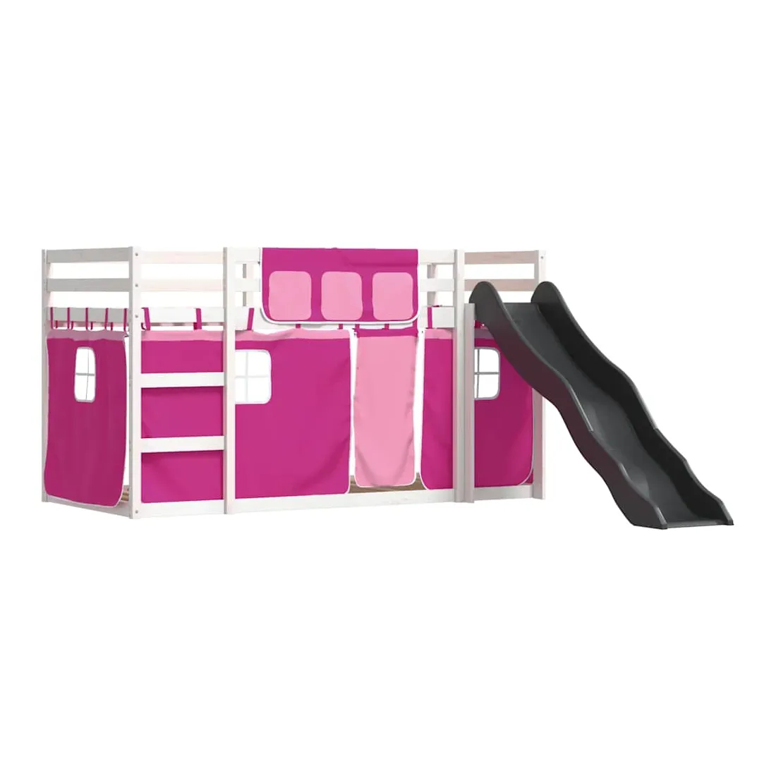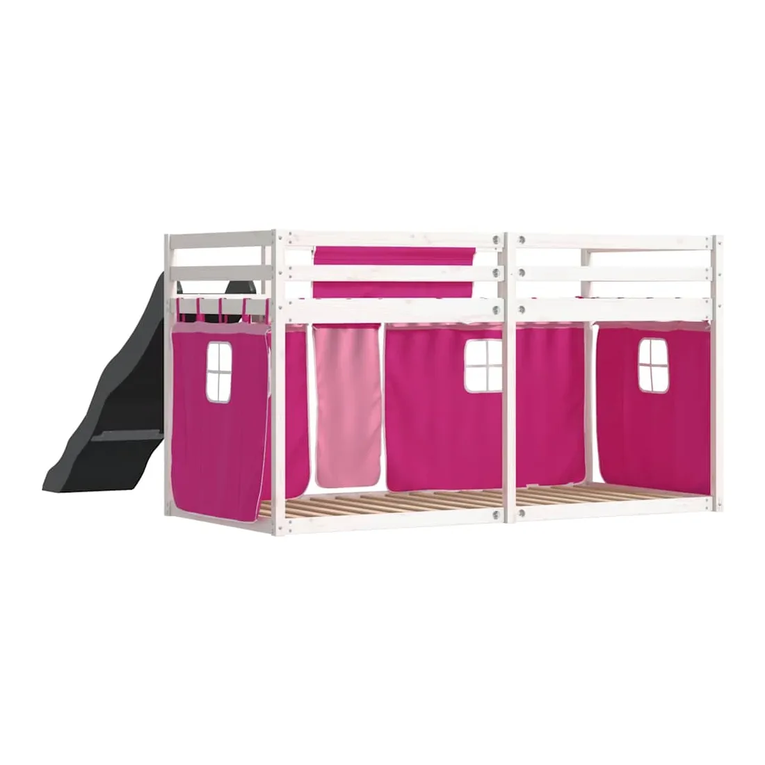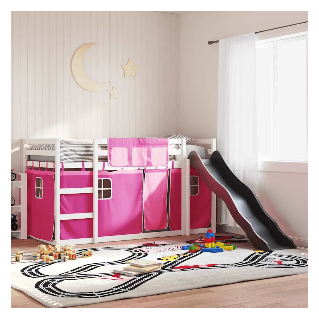 Ce lit superposé en bois est élégant et fonctionnel, ce qui en fait un supplément parfait à toute pièce dont l'espace est limité. Bois de pin massif : ce lit superposé est fabriqué en bois de pin massif pour plus de stabilité et de durabilité. Le bois de pin a un grain droit et les nœuds donnent au matériau son aspect rustique caractéristique.Très amusant : vous pouvez combiner les rideaux avec le lit superposé bas pour créer la base secrète de votre enfant, ce qui permet de s’amuser à l’heure du coucher et d’ajouter un point d'intérêt à la chambre à coucher !Barrières de sécurité : le lit supérieur est équipé de garde-corps de sécurité sur les 4 côtés, afin que votre enfant puisse dormir sans craindre de tomber.Échelle et toboggan pratiques : ce lit superposé est doté d'un toboggan amusant qui apporte de la joie et transforme leur chambre en une aire de jeux intérieure. La combinaison d'une échelle d'escalade et d'un toboggan rend l'heure du coucher plus vivante et plus intéressante pour les enfants.Lattes robustes : les lattes de contreplaqué assurent une bonne répartition du poids, garantissant que le matelas reste en place à chaque torsion de votre corps pendant le sommeil. Bon à savoir :Un matelas n'est pas inclus avec ce lit. Nous offrons une sélection variée de matelas. Vous pouvez consulter notre boutique pour trouver un matelas assorti. Attention :Pour éviter qu'il ne bascule, ce produit doit être utilisé avec le dispositif de fixation murale fourni.