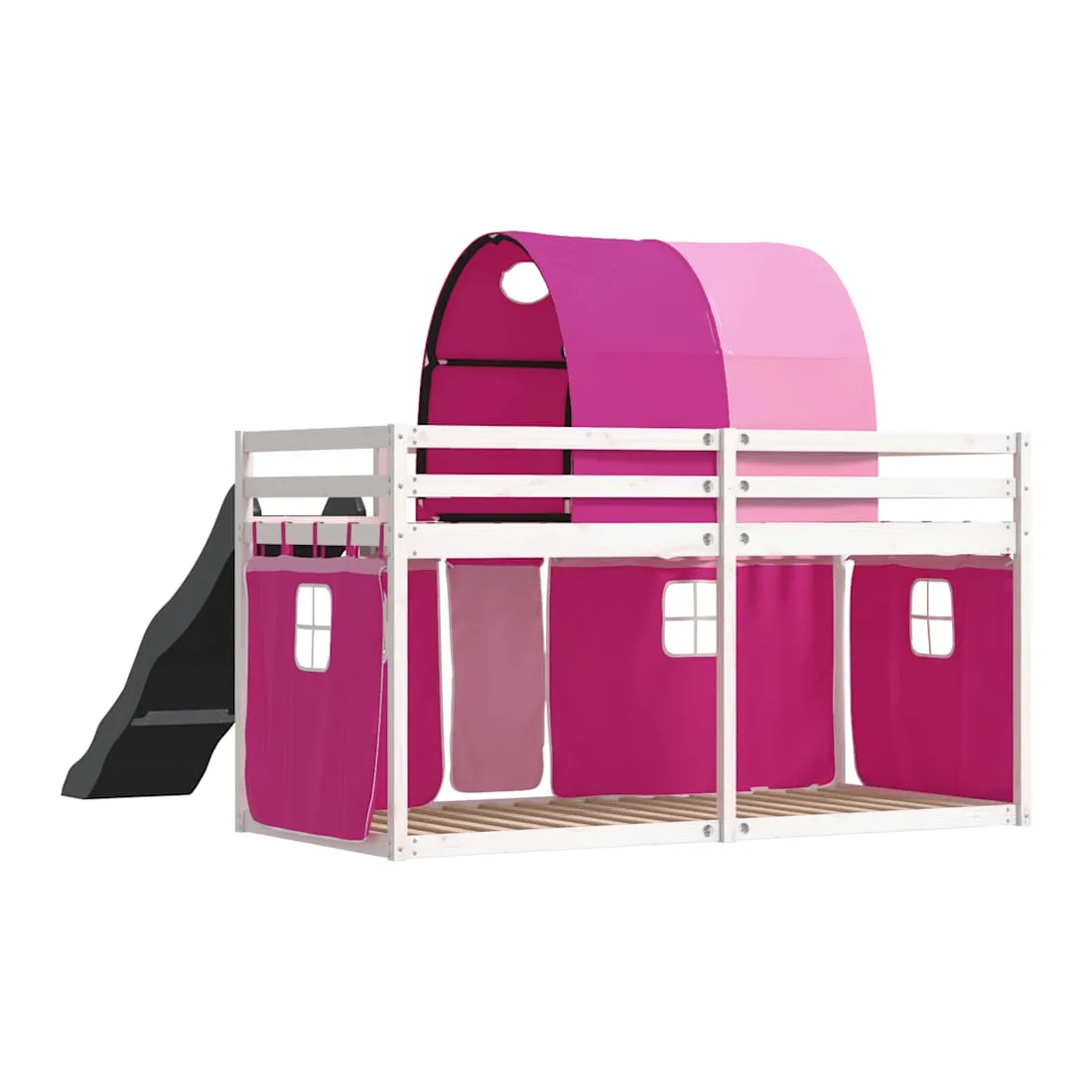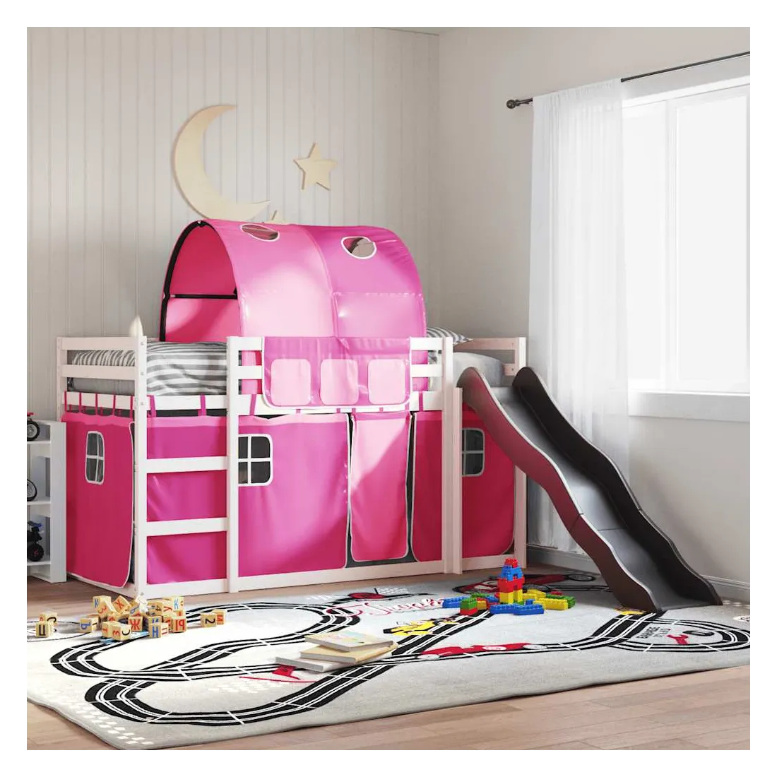 Ce lit superposé en bois est élégant et fonctionnel, ce qui en fait un supplément parfait à toute pièce dont l'espace est limité. Bois de pin massif : ce lit superposé est fabriqué en bois de pin massif pour plus de stabilité et de durabilité. Le bois de pin a un grain droit et les nœuds donnent au matériau son aspect rustique caractéristique.Très amusant : vous pouvez combiner les rideaux avec le lit superposé bas pour créer la base secrète de votre enfant, ce qui permet de s’amuser à l’heure du coucher et d’ajouter un point d'intérêt à la chambre à coucher !Barrières de sécurité : le lit supérieur est équipé de garde-corps de sécurité sur les 4 côtés, afin que votre enfant puisse dormir sans craindre de tomber.Échelle et toboggan pratiques : ce lit superposé est doté d'un toboggan amusant qui apporte de la joie et transforme leur chambre en une aire de jeux intérieure. La combinaison d'une échelle d'escalade et d'un toboggan rend l'heure du coucher plus vivante et plus intéressante pour les enfants.Lattes robustes : les lattes de contreplaqué assurent une bonne répartition du poids, garantissant que le matelas reste en place à chaque torsion de votre corps pendant le sommeil. Bon à savoir :Un matelas n'est pas inclus avec ce lit. Nous offrons une sélection variée de matelas. Vous pouvez consulter notre boutique pour trouver un matelas assorti. Attention :Pour éviter qu'il ne bascule, ce produit doit être utilisé avec le dispositif de fixation murale fourni.