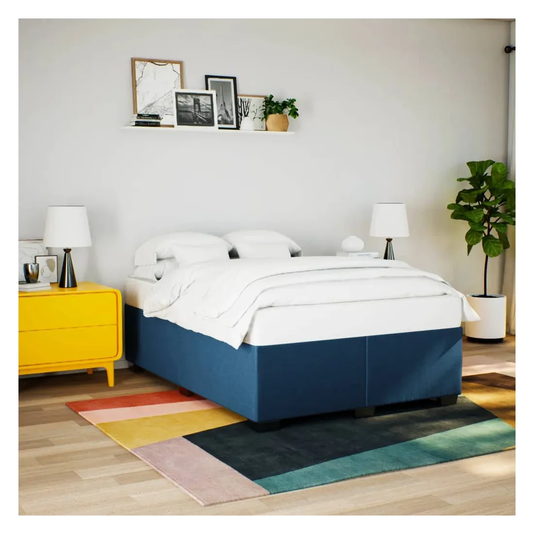 Cadre de lit sans matelas bleu 140x190 cm tissu