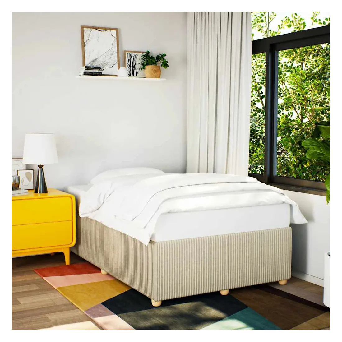 Profitez d'une meilleure nuit de sommeil reposante grâce à ce cadre de lit ! Il est un supplément accueillant à toute chambre à coucher. Matériau doux et durable : le tissu en polyester allie douceur, respirabilité et durabilité, vous garantissant un confort et une convivialité ultimes.Lattes pour un soutien optimal : ce cadre de lit est complété par des lattes pour offrir un soutien et une respirabilité essentiels à votre matelas.Pieds stables et durables : ce lit est soutenu par des pieds robustes, ce qui garantit sa stabilité, sa sécurité et sa fermeté. Bon à savoir :Un matelas n'est pas inclus avec ce lit. Nous offrons une sélection variée de matelas. Vous pouvez consulter notre boutique pour trouver un matelas assorti.