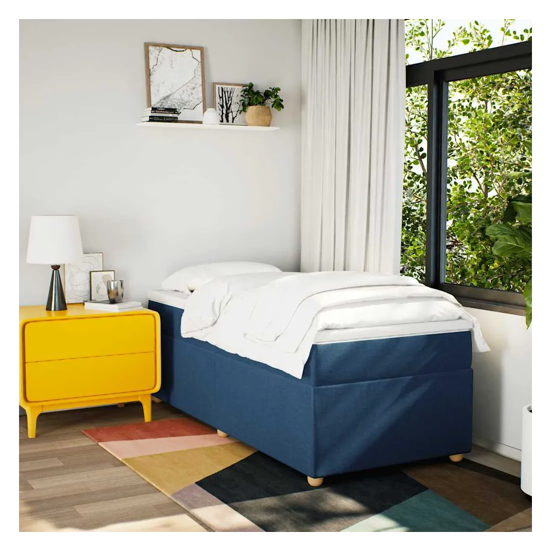 Utilisez ce lit à sommier pour profiter d'une nuit de sommeil réparatrice ! Il vous offre une relaxation maximale et un sommeil agréable. Matériau doux et durable : le tissu en polyester allie douceur, respirabilité et durabilité, vous garantissant un confort et une convivialité ultimes.Matelas à ressorts ensachés : ce matelas à ressorts ensachés comporte des ressorts ensachés individuels qui fonctionnent indépendamment pour offrir un soutien personnalisé en réagissant uniquement à la pression exercée dans chaque zone. Cette conception empêche « l'enroulement » et réduit le transfert de mouvement par rapport aux matelas traditionnels à ressorts ouverts. Chaque ressort ensaché soutient le corps individuellement.Surmatelas confortable : ce surmatelas améliore le soutien et le confort grâce à sa surface douce et respirante, tout en prolongeant la durée de vie de votre matelas. Sa housse amovible permet un lavage facile, ce qui facilite l'entretien.Lattes pour un soutien optimal : le cadre de lit est complété par des lattes pour offrir un soutien et une respirabilité essentiels à votre matelas.Pieds stables et durables : ce lit est soutenu par des pieds robustes, ce qui garantit sa stabilité, sa sécurité et sa fermeté. Bon à savoir :Pour des raisons d'hygiène, le matelas ne peut pas être retourné si l'emballage est retiré ou ouvert.