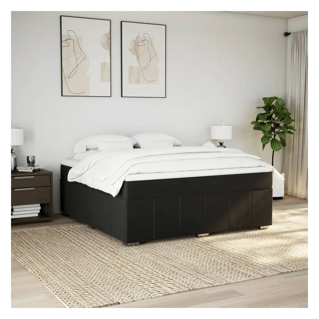 Sommier à lattes de lit avec matelas Noir 180x200 cm Tissu