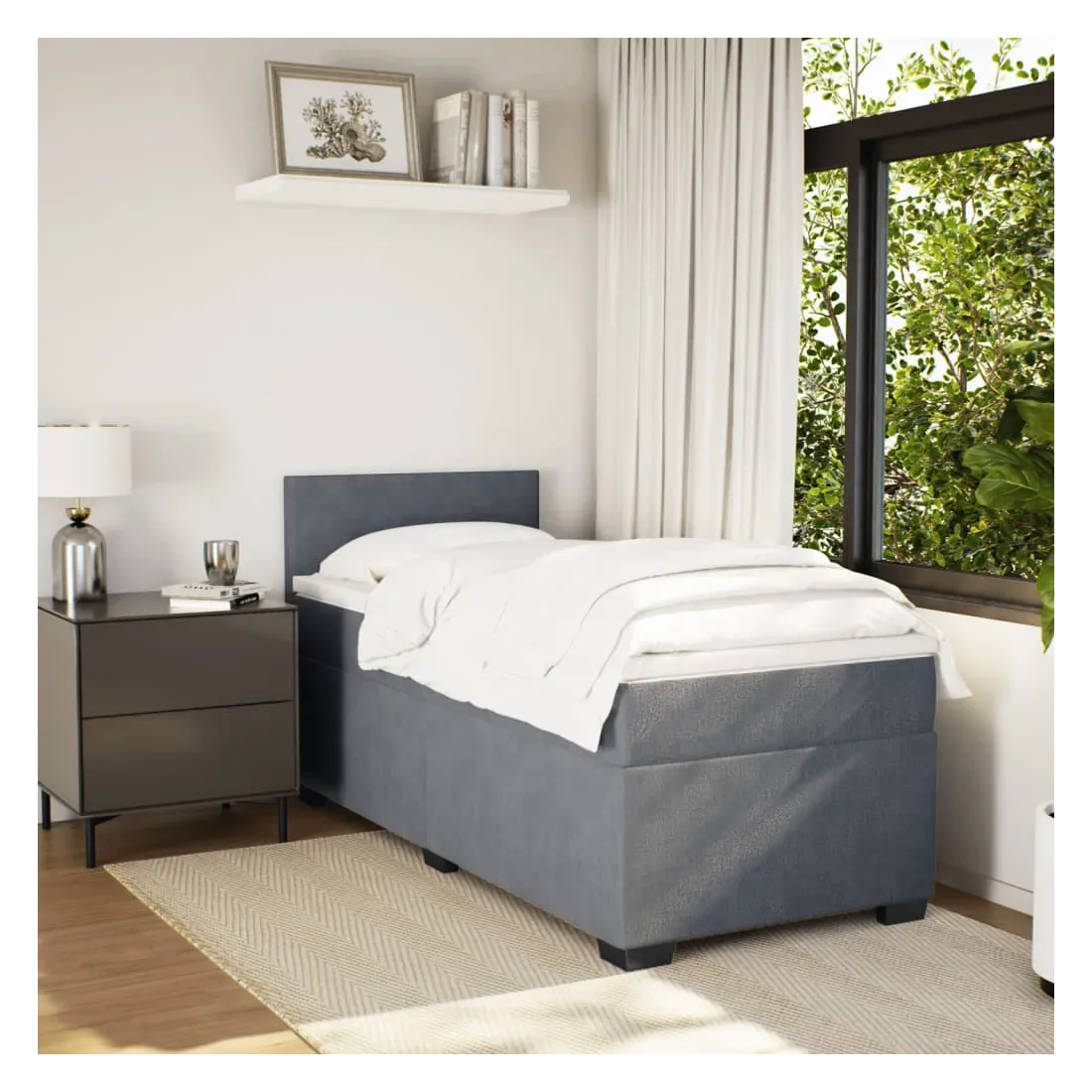 Utilisez ce lit à sommier pour profiter d'une nuit de sommeil réparatrice ! Il vous offre une relaxation maximale et un sommeil agréable. Velours doux : le velours est un tissu doux et luxueux qui se reconnaît à son tas dense de fibres uniformément coupées qui ont une touche lisse. Le tissu en velours présente un toucher doux distinctif, ce qui le rend confortable au toucher. Matelas à ressorts ensachés : ce matelas à ressorts ensachés comporte des ressorts ensachés individuels qui fonctionnent indépendamment pour offrir un soutien personnalisé en réagissant uniquement à la pression exercée dans chaque zone. Cette conception empêche « l'enroulement » et réduit le transfert de mouvement par rapport aux matelas traditionnels à ressorts ouverts. Chaque ressort ensaché soutient le corps in