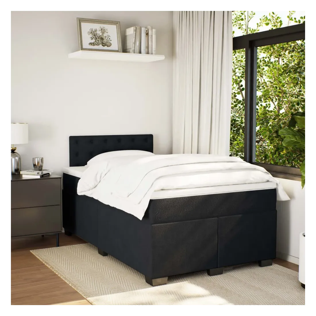 Utilisez ce lit à sommier pour profiter d'une nuit de sommeil réparatrice ! Il vous offre une relaxation maximale et un sommeil agréable. Matériau doux et confortable : le tissu en velours présente une surface douce et lisse qui offre une sensation agréable contre la peau, vous apportant chaleur et confort ultime.Matelas à ressorts ensachés : ce matelas à ressorts ensachés comporte des ressorts ensachés individuels qui fonctionnent indépendamment pour offrir un soutien personnalisé en réagissant uniquement à la pression exercée dans chaque zone. Cette conception empêche « l'enroulement » et réduit le transfert de mouvement par rapport aux matelas traditionnels à ressorts ouverts. Chaque ressort ensaché soutient le corps individuellement.Surmatelas confortable : ce surmatelas améliore le soutien et le confort grâce à sa surface douce et respirante, tout en prolongeant la durée de vie de votre matelas. Sa housse amovible permet un lavage facile, ce qui facilite l'entretien.Lattes pour un soutien optimal : le cadre de lit est complété par des lattes pour offrir un soutien et une respirabilité essentiels à votre matelas. Bon à savoir :Pour des raisons d'hygiène, le matelas ne peut pas être retourné si l'emballage est retiré ou ouvert.
