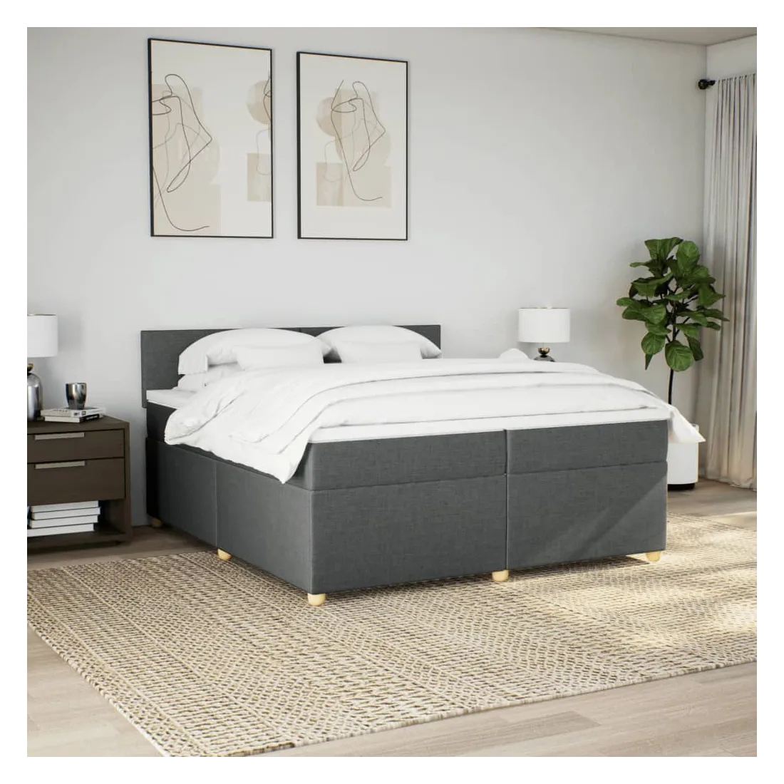 Sommier à lattes de lit avec matelas Gris foncé 200x200cm Tissu