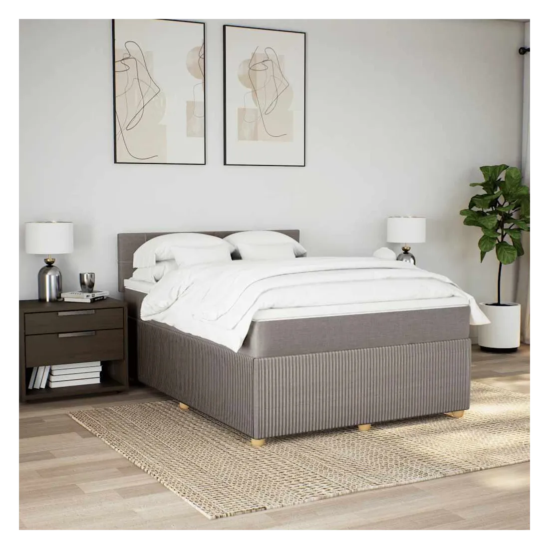 Sommier à lattes de lit avec matelas Taupe 140x200 cm Tissu