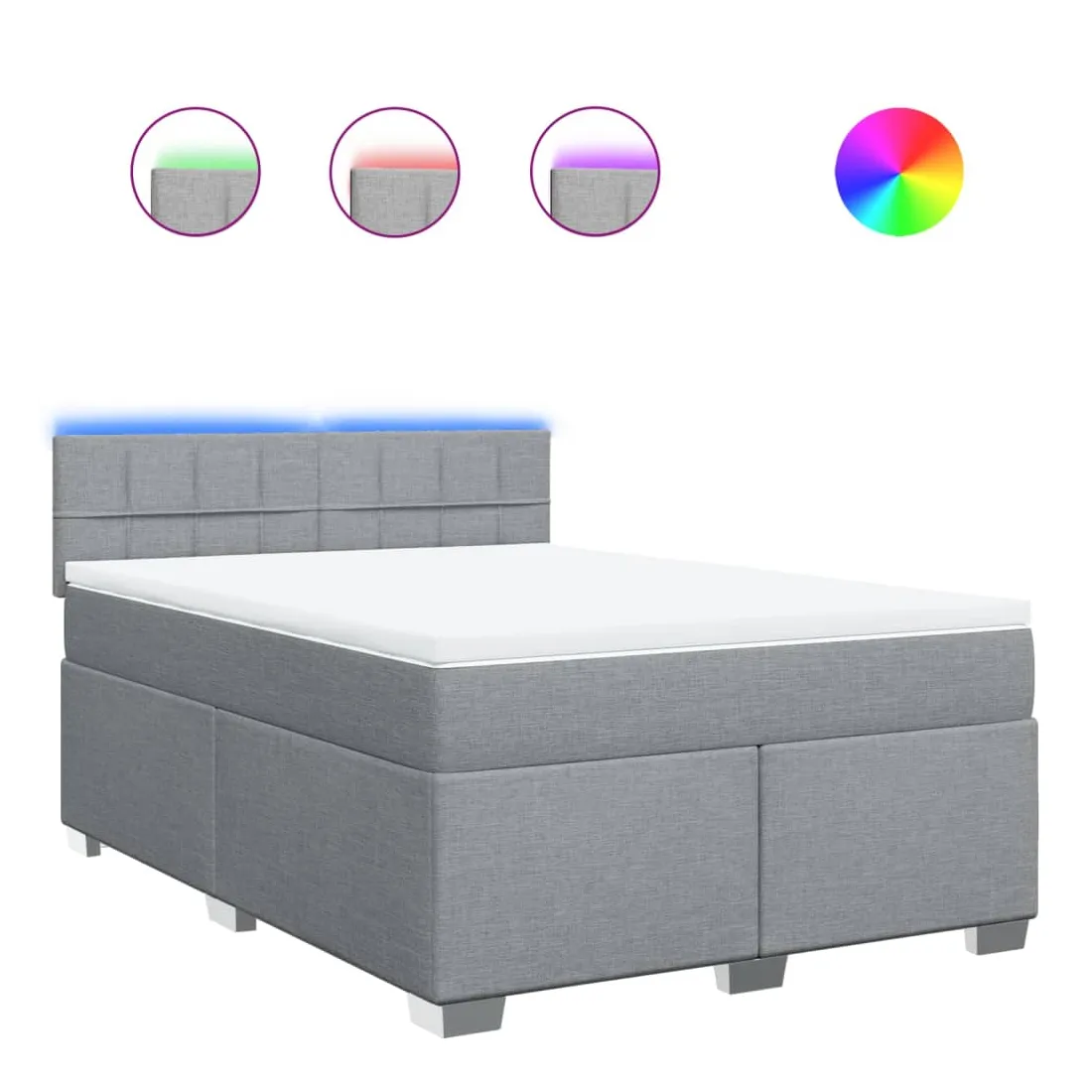 Utilisez ce lit à sommier pour profiter d'une nuit de sommeil réparatrice ! Il vous offre une relaxation maximale et un sommeil agréable. Matériau doux et durable : le tissu en polyester allie douceur, respirabilité et durabilité, vous garantissant un confort et une convivialité ultimes.Matelas à ressorts ensachés : ce matelas à ressorts ensachés comporte des ressorts ensachés individuels qui fonctionnent indépendamment pour offrir un soutien personnalisé en réagissant uniquement à la pression exercée dans chaque zone. Cette conception empêche « l'enroulement » et réduit le transfert de mouvement par rapport aux matelas traditionnels à ressorts ouverts. Chaque ressort ensaché soutient le corps individuellement.Lumières LED pour une ambiance agréable : ce lit est équipé de lumières LED qui peuvent être facilement réglées pour créer un spectacle lumineux personnalisé. Vous pouvez personnaliser les modes, les couleurs et la luminosité pour améliorer l'ambiance de votre espace intérieur.Surmatelas confortable : ce surmatelas améliore le soutien et le confort grâce à sa surface douce et respirante, tout en prolongeant la durée de vie de votre matelas. Sa housse amovible permet un lavage facile, ce qui facilite l'entretien. Bon à savoir :Ce produit est doté d'un connecteur USB qui nécessite une source d'alimentation USB de 5V certifiée (non incluse).Pour des raisons d'hygiène, le matelas ne peut pas être retourné si l'emballage est retiré ou ouvert.Seule la partie avec un symbole de ciseaux peut être coupée et seule la partie avec l'USB continuera à fonctionner comme avant.