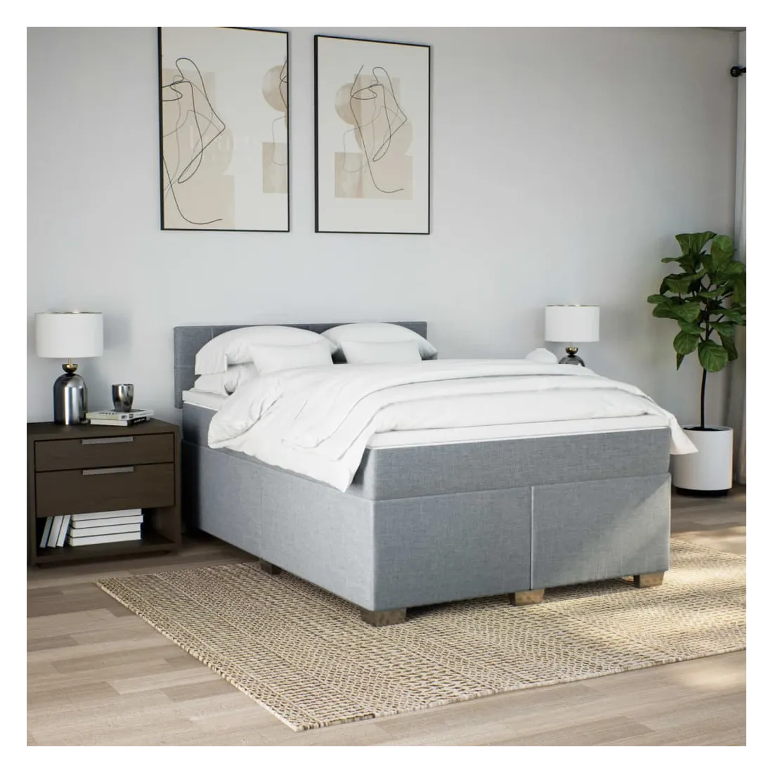 Sommier à lattes de lit avec matelas Gris clair 140x190cm Tissu