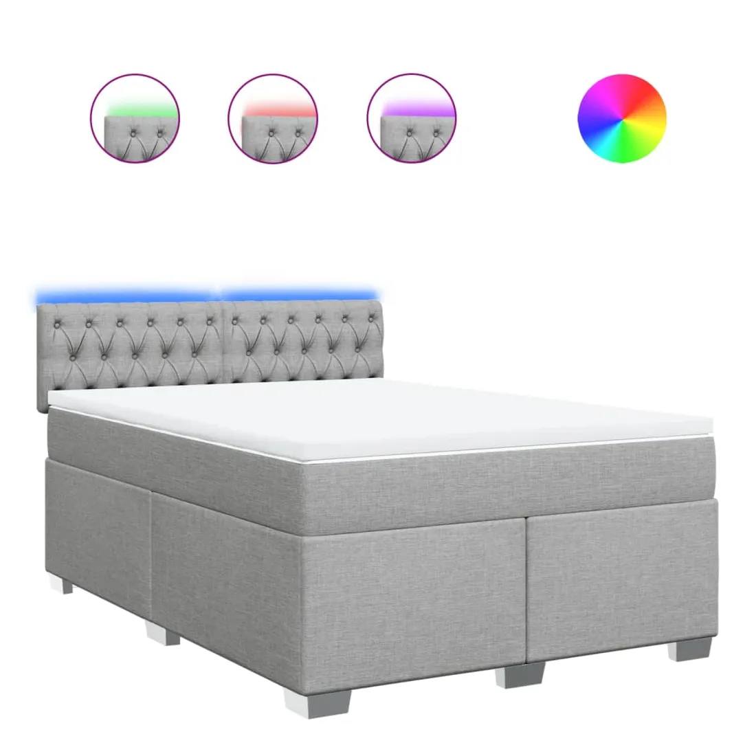 Utilisez ce lit à sommier pour profiter d'une nuit de sommeil réparatrice ! Il vous offre une relaxation maximale et un sommeil agréable. Matériau doux et durable : le tissu en polyester allie douceur, respirabilité et durabilité, vous garantissant un confort et une convivialité ultimes.Matelas à ressorts ensachés : ce matelas à ressorts ensachés comporte des ressorts ensachés individuels qui fonctionnent indépendamment pour offrir un soutien personnalisé en réagissant uniquement à la pression exercée dans chaque zone. Cette conception empêche « l'enroulement » et réduit le transfert de mouvement par rapport aux matelas traditionnels à ressorts ouverts. Chaque ressort ensaché soutient le corps individuellement.Lumières LED pour une ambiance agréable : ce lit est équipé de lumières LED qui peuvent être facilement réglées pour créer un spectacle lumineux personnalisé. Vous pouvez personnaliser les modes, les couleurs et la luminosité pour améliorer l'ambiance de votre espace intérieur.Surmatelas confortable : ce surmatelas améliore le soutien et le confort grâce à sa surface douce et respirante, tout en prolongeant la durée de vie de votre matelas. Sa housse amovible permet un lavage facile, ce qui facilite l'entretien. Bon à savoir :Ce produit est doté d'un connecteur USB qui nécessite une source d'alimentation USB de 5V certifiée (non incluse).Pour des raisons d'hygiène, le matelas ne peut pas être retourné si l'emballage est retiré ou ouvert.Seule la partie avec un symbole de ciseaux peut être coupée et seule la partie avec l'USB continuera à fonctionner comme avant.