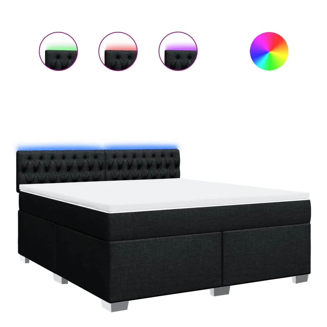 Utilisez ce lit à sommier pour profiter d'une nuit de sommeil réparatrice ! Il vous offre une relaxation maximale et un sommeil agréable. Matériau doux et durable : le tissu en polyester allie douceur, respirabilité et durabilité, vous garantissant un confort et une convivialité ultimes.Matelas à ressorts ensachés : ce matelas à ressorts ensachés comporte des ressorts ensachés individuels qui fonctionnent indépendamment pour offrir un soutien personnalisé en réagissant uniquement à la pression exercée dans chaque zone. Cette conception empêche « l'enroulement » et réduit le transfert de mouvement par rapport aux matelas traditionnels à ressorts ouverts. Chaque ressort ensaché soutient le corps individuellement.Lumières LED pour une ambiance agréable : ce lit est équipé de lumières LED qui peuvent être facilement réglées pour créer un spectacle lumineux personnalisé. Vous pouvez personnaliser les modes, les couleurs et la luminosité pour améliorer l'ambiance de votre espace intérieur.Surmatelas confortable : ce surmatelas améliore le soutien et le confort grâce à sa surface douce et respirante, tout en prolongeant la durée de vie de votre matelas. Sa housse amovible permet un lavage facile, ce qui facilite l'entretien. Bon à savoir :Ce produit est doté d'un connecteur USB qui nécessite une source d'alimentation USB de 5V certifiée (non incluse).Pour des raisons d'hygiène, le matelas ne peut pas être retourné si l'emballage est retiré ou ouvert.Seule la partie avec un symbole de ciseaux peut être coupée et seule la partie avec l'USB continuera à fonctionner comme avant.