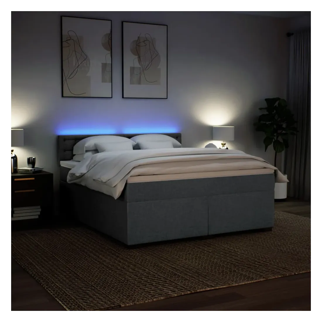 Utilisez ce lit à sommier pour profiter d'une nuit de sommeil réparatrice ! Il vous offre une relaxation maximale et un sommeil agréable. Matériau doux et durable : le tissu en polyester allie douceur, respirabilité et durabilité, vous garantissant un confort et une convivialité ultimes.Matelas à ressorts ensachés : ce matelas à ressorts ensachés comporte des ressorts ensachés individuels qui fonctionnent indépendamment pour offrir un soutien personnalisé en réagissant uniquement à la pression exercée dans chaque zone. Cette conception empêche « l'enroulement » et réduit le transfert de mouvement par rapport aux matelas traditionnels à ressorts ouverts. Chaque ressort ensaché soutient le corps individuellement.Lumières LED pour une ambiance agréable : ce lit est équipé de lumières LED qui peuvent être facilement réglées pour créer un spectacle lumineux personnalisé. Vous pouvez personnaliser les modes, les couleurs et la luminosité pour améliorer l'ambiance de votre espace intérieur.Surmatelas confortable : ce surmatelas améliore le soutien et le confort grâce à sa surface douce et respirante, tout en prolongeant la durée de vie de votre matelas. Sa housse amovible permet un lavage facile, ce qui facilite l'entretien. Bon à savoir :Ce produit est doté d'un connecteur USB qui nécessite une source d'alimentation USB de 5V certifiée (non incluse).Pour des raisons d'hygiène, le matelas ne peut pas être retourné si l'emballage est retiré ou ouvert.Seule la partie avec un symbole de ciseaux peut être coupée et seule la partie avec l'USB continuera à fonctionner comme avant.