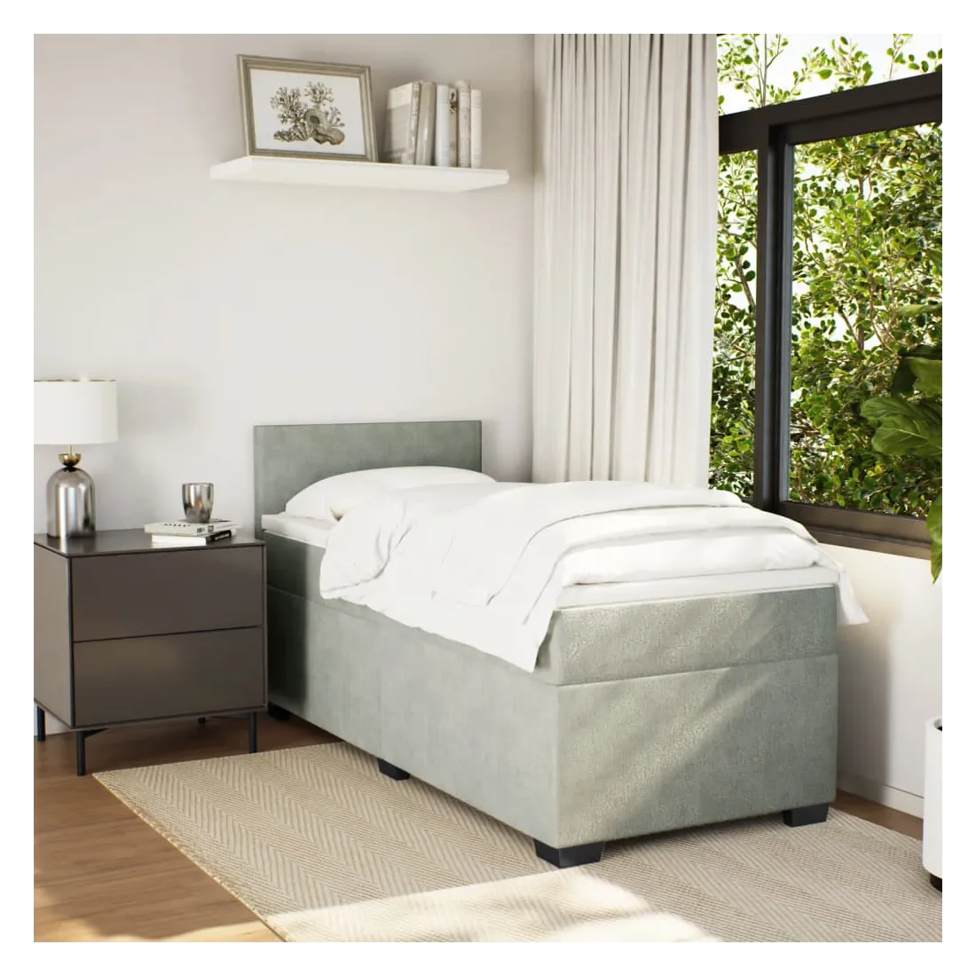 Utilisez ce lit à sommier pour profiter d'une nuit de sommeil réparatrice ! Il vous offre une relaxation maximale et un sommeil agréable. Matériau doux et confortable : le tissu en velours présente une surface douce et lisse qui offre une sensation agréable contre la peau, vous apportant chaleur et confort ultime.Matelas à ressorts ensachés : ce matelas à ressorts ensachés comporte des ressorts ensachés individuels qui fonctionnent indépendamment pour offrir un soutien personnalisé en réagissant uniquement à la pression exercée dans chaque zone. Cette conception empêche « l'enroulement » et réduit le transfert de mouvement par rapport aux matelas traditionnels à ressorts ouverts. Chaque ressort ensaché soutient le corps individuellement.Lumières LED pour une ambiance agréable : ce lit est équipé de lumières LED qui peuvent être facilement réglées pour créer un spectacle lumineux personnalisé. Vous pouvez personnaliser les modes, les couleurs et la luminosité pour améliorer l'ambiance de votre espace intérieur.Surmatelas confortable : ce surmatelas améliore le soutien et le confort grâce à sa surface douce et respirante, tout en prolongeant la durée de vie de votre matelas. Sa housse amovible permet un lavage facile, ce qui facilite l'entretien. Bon à savoir :Ce produit est doté d'un connecteur USB qui nécessite une source d'alimentation USB de 5V certifiée (non incluse).Pour des raisons d'hygiène, le matelas ne peut pas être retourné si l'emballage est retiré ou ouvert.Seule la partie avec un symbole de ciseaux peut être coupée et seule la partie avec l'USB continuera à fonctionner comme avant.