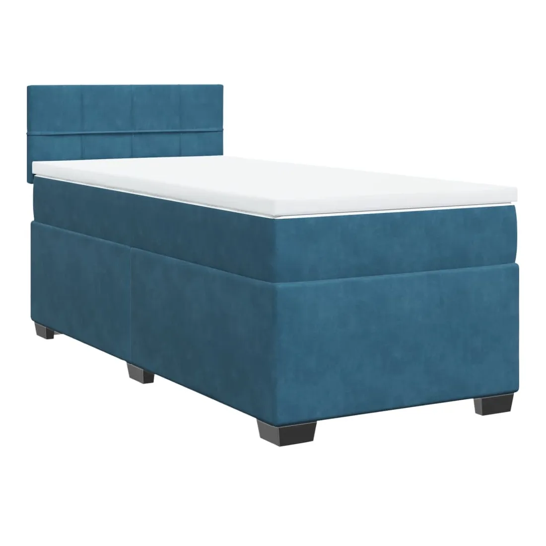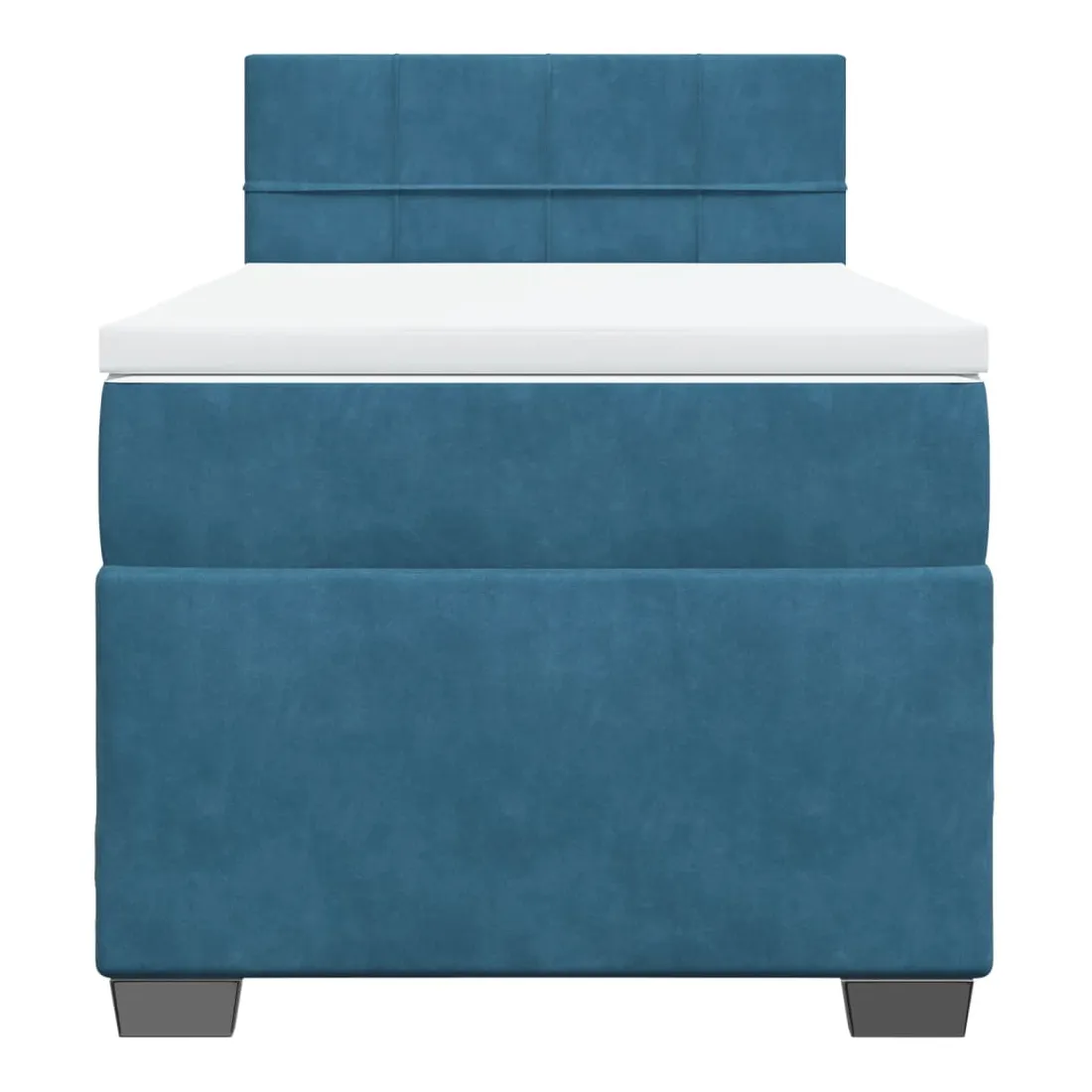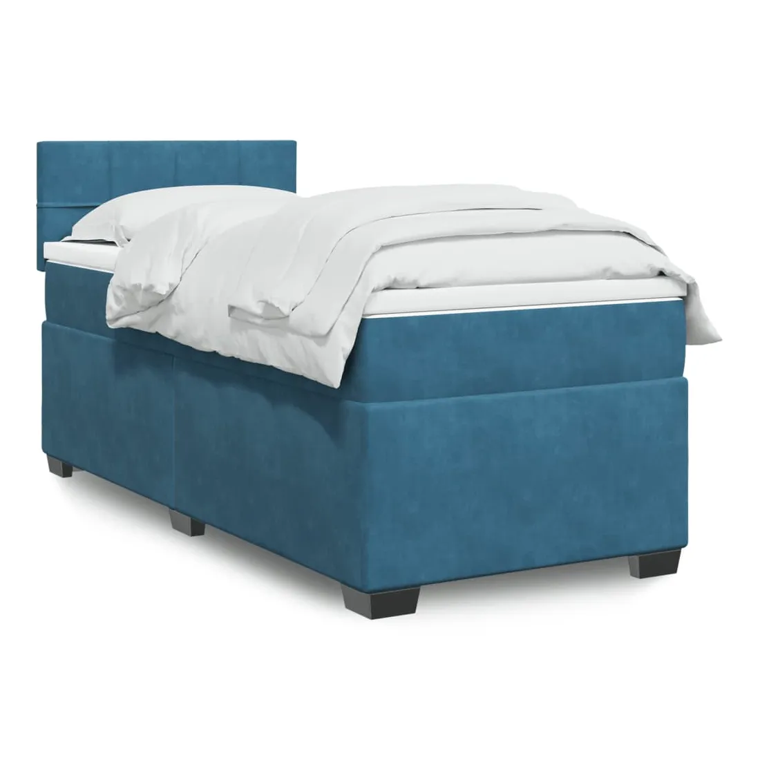 Sommier à lattes de lit avec matelas bleu 90x190 cm velours
