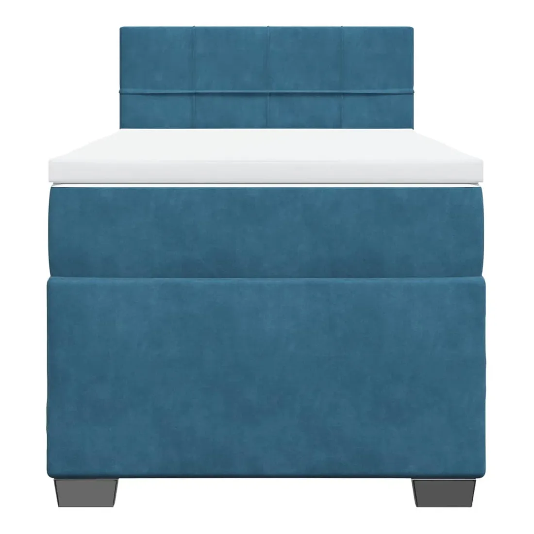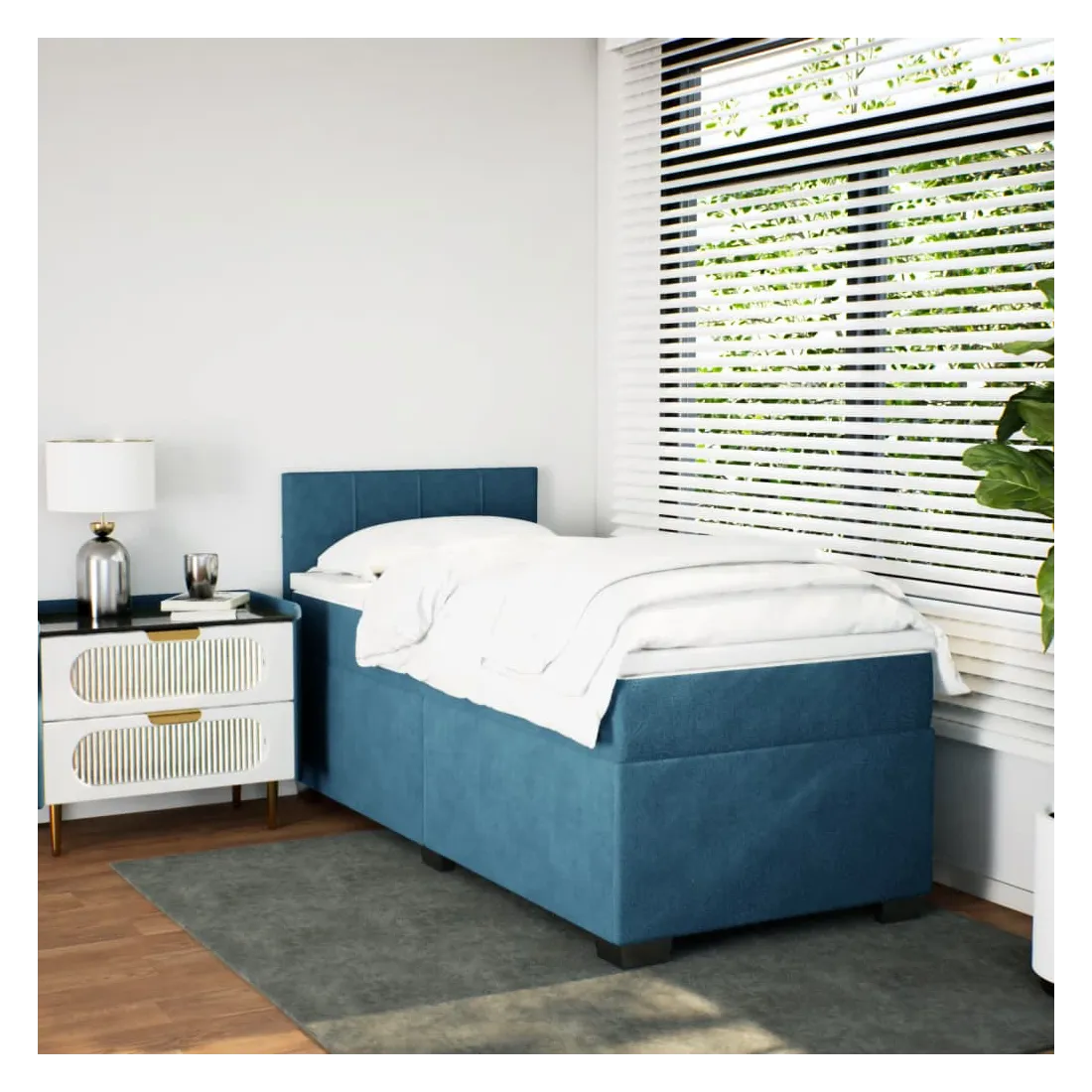 Sommier à lattes de lit avec matelas bleu 90x200 cm velours
