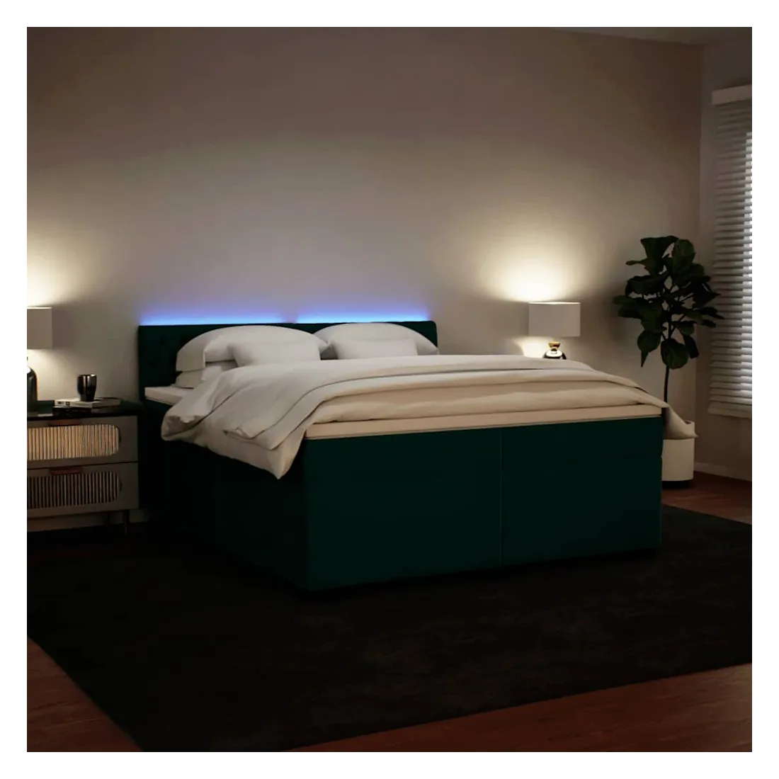 Utilisez ce lit à sommier pour profiter d'une nuit de sommeil réparatrice ! Il vous offre une relaxation maximale et un sommeil agréable. Matériau doux et confortable : le tissu en velours présente une surface douce et lisse qui offre une sensation agréable contre la peau, vous apportant chaleur et confort ultime.Matelas à ressorts ensachés : ce matelas à ressorts ensachés comporte des ressorts ensachés individuels qui fonctionnent indépendamment pour offrir un soutien personnalisé en réagissant uniquement à la pression exercée dans chaque zone. Cette conception empêche « l'enroulement » et réduit le transfert de mouvement par rapport aux matelas traditionnels à ressorts ouverts. Chaque ressort ensaché soutient le corps individuellement.Lumières LED pour une ambiance agréable : ce lit est équipé de lumières LED qui peuvent être facilement réglées pour créer un spectacle lumineux personnalisé. Vous pouvez personnaliser les modes, les couleurs et la luminosité pour améliorer l'ambiance de votre espace intérieur.Surmatelas confortable : ce surmatelas améliore le soutien et le confort grâce à sa surface douce et respirante, tout en prolongeant la durée de vie de votre matelas. Sa housse amovible permet un lavage facile, ce qui facilite l'entretien. Bon à savoir :Ce produit est doté d'un connecteur USB qui nécessite une source d'alimentation USB de 5V certifiée (non incluse).Pour des raisons d'hygiène, le matelas ne peut pas être retourné si l'emballage est retiré ou ouvert.Seule la partie avec un symbole de ciseaux peut être coupée et seule la partie avec l'USB continuera à fonctionner comme avant.