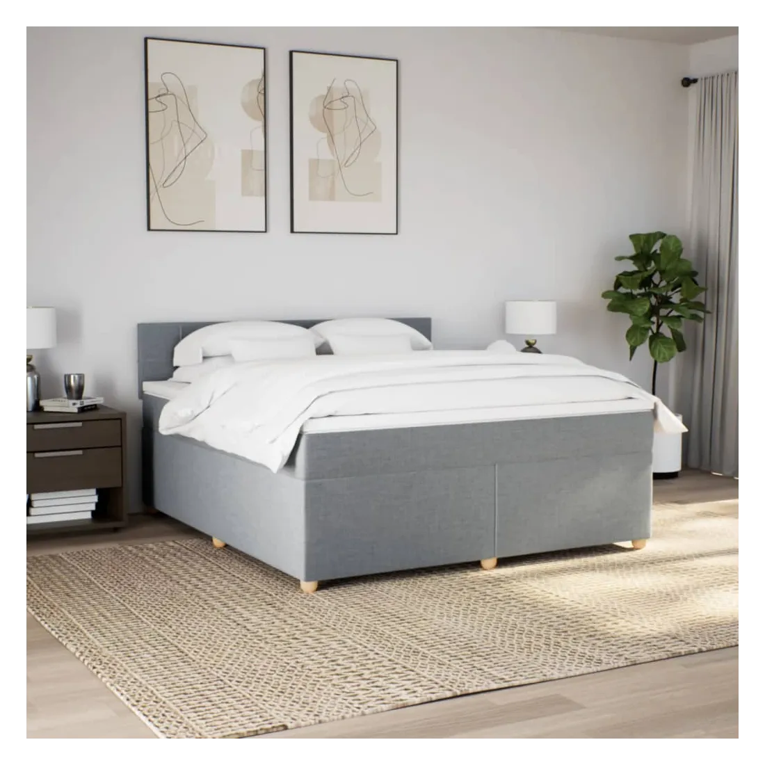 Sommier à lattes de lit avec matelas Gris clair 180x200cm Tissu