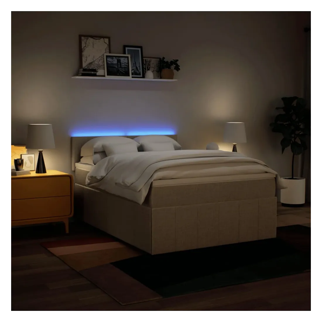 Utilisez ce lit à sommier pour profiter d'une nuit de sommeil réparatrice ! Il vous offre une relaxation maximale et un sommeil agréable. Matériau doux et durable : le tissu en polyester allie douceur, respirabilité et durabilité, vous garantissant un confort et une convivialité ultimes.Matelas à ressorts ensachés : ce matelas à ressorts ensachés comporte des ressorts ensachés individuels qui fonctionnent indépendamment pour offrir un soutien personnalisé en réagissant uniquement à la pression exercée dans chaque zone. Cette conception empêche « l'enroulement » et réduit le transfert de mouvement par rapport aux matelas traditionnels à ressorts ouverts. Chaque ressort ensaché soutient le corps individuellement.Lumières LED pour une ambiance agréable : ce lit est équipé de lumières LED qui peuvent être facilement réglées pour créer un spectacle lumineux personnalisé. Vous pouvez personnaliser les modes, les couleurs et la luminosité pour améliorer l'ambiance de votre espace intérieur.Surmatelas confortable : ce surmatelas améliore le soutien et le confort grâce à sa surface douce et respirante, tout en prolongeant la durée de vie de votre matelas. Sa housse amovible permet un lavage facile, ce qui facilite l'entretien. Bon à savoir :Ce produit est doté d'un connecteur USB qui nécessite une source d'alimentation USB de 5V certifiée (non incluse).Pour des raisons d'hygiène, le matelas ne peut pas être retourné si l'emballage est retiré ou ouvert.Seule la partie avec un symbole de ciseaux peut être coupée et seule la partie avec l'USB continuera à fonctionner comme avant.