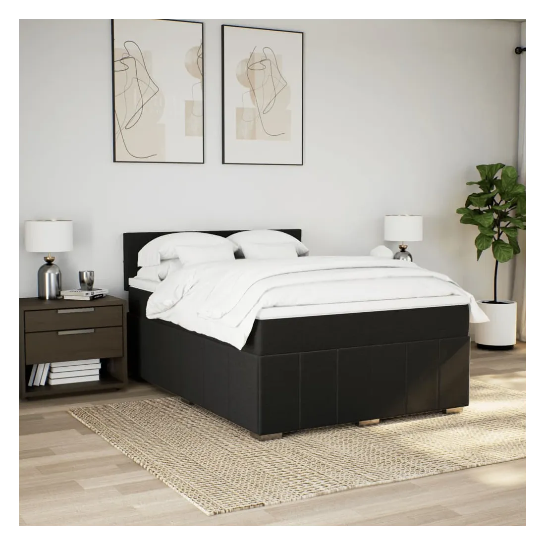 Sommier à lattes de lit avec matelas Noir 160x200 cm Tissu