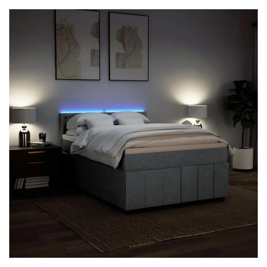 Utilisez ce lit à sommier pour profiter d'une nuit de sommeil réparatrice ! Il vous offre une relaxation maximale et un sommeil agréable. Matériau doux et durable : le tissu en polyester allie douceur, respirabilité et durabilité, vous garantissant un confort et une convivialité ultimes.Matelas à ressorts ensachés : ce matelas à ressorts ensachés comporte des ressorts ensachés individuels qui fonctionnent indépendamment pour offrir un soutien personnalisé en réagissant uniquement à la pression exercée dans chaque zone. Cette conception empêche « l'enroulement » et réduit le transfert de mouvement par rapport aux matelas traditionnels à ressorts ouverts. Chaque ressort ensaché soutient le corps individuellement.Lumières LED pour une ambiance agréable : ce lit est équipé de lumières LED qui peuvent être facilement réglées pour créer un spectacle lumineux personnalisé. Vous pouvez personnaliser les modes, les couleurs et la luminosité pour améliorer l'ambiance de votre espace intérieur.Surmatelas confortable : ce surmatelas améliore le soutien et le confort grâce à sa surface douce et respirante, tout en prolongeant la durée de vie de votre matelas. Sa housse amovible permet un lavage facile, ce qui facilite l'entretien. Bon à savoir :Ce produit est doté d'un connecteur USB qui nécessite une source d'alimentation USB de 5V certifiée (non incluse).Pour des raisons d'hygiène, le matelas ne peut pas être retourné si l'emballage est retiré ou ouvert.Seule la partie avec un symbole de ciseaux peut être coupée et seule la partie avec l'USB continuera à fonctionner comme avant.