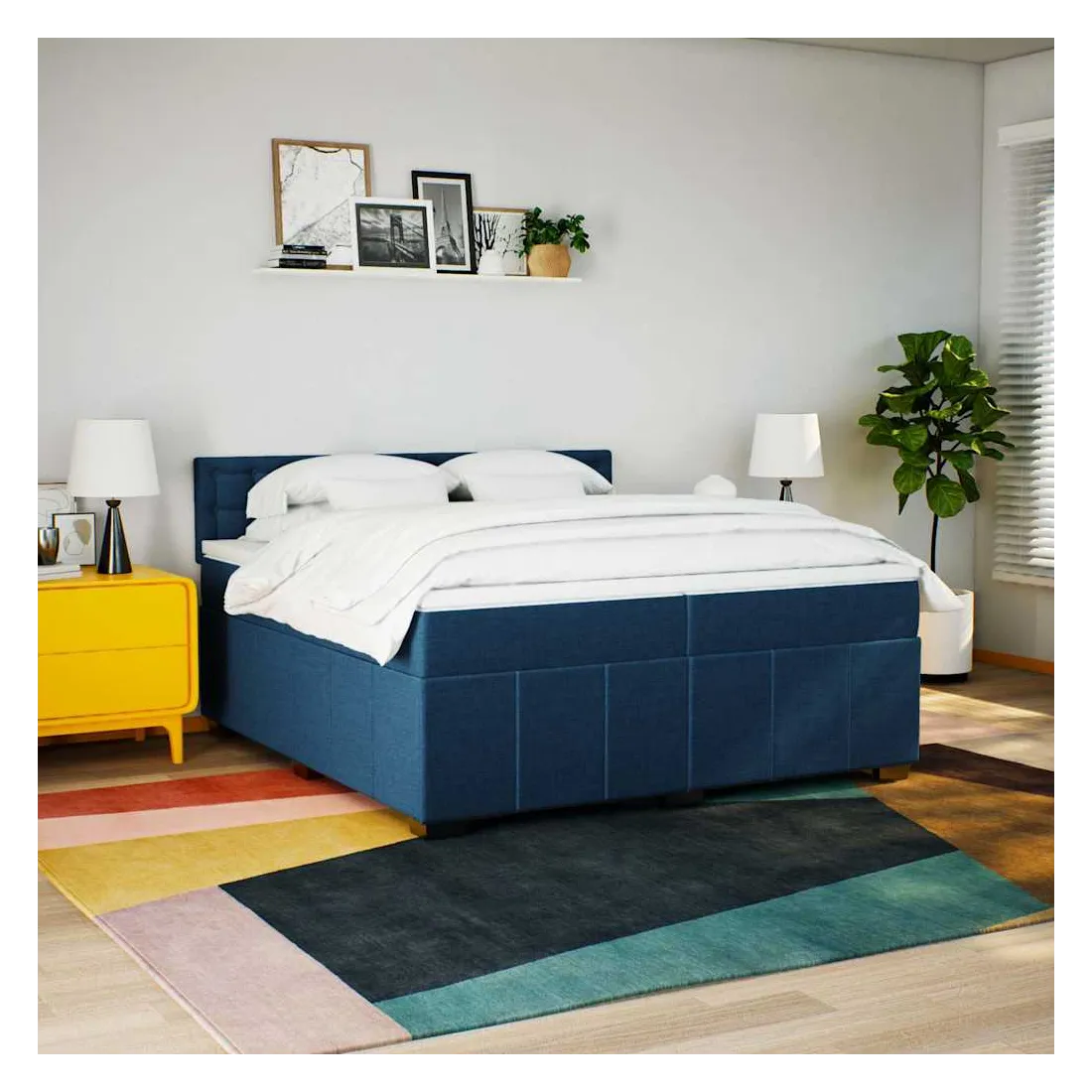 Sommier à lattes de lit avec matelas Bleu 200x200 cm Tissu