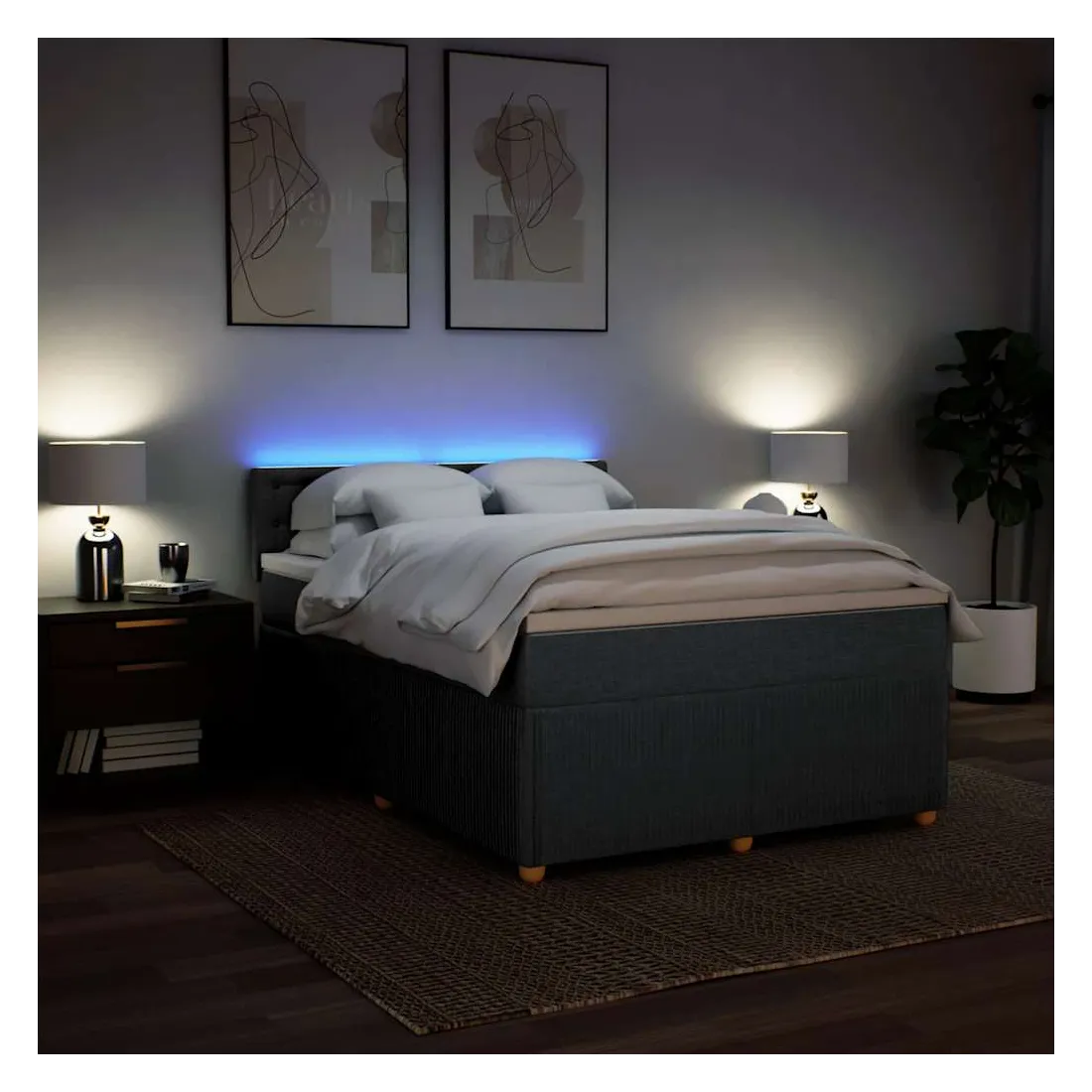 Utilisez ce lit à sommier pour profiter d'une nuit de sommeil réparatrice ! Il vous offre une relaxation maximale et un sommeil agréable. Matériau doux et durable : le tissu en polyester allie douceur, respirabilité et durabilité, vous garantissant un confort et une convivialité ultimes. Matelas à ressorts ensachés : ce matelas à ressorts ensachés comporte des ressorts ensachés individuels qui fonctionnent indépendamment pour offrir un soutien personnalisé en réagissant uniquement à la pression exercée dans chaque zone. Cette conception empêche « l'enroulement » et réduit le transfert de mouvement par rapport aux matelas traditionnels à ressorts ouverts. Chaque ressort ensaché soutient le corps individuellement. Lumières LED pour une ambiance agréable : ce lit est équipé de lumières LE