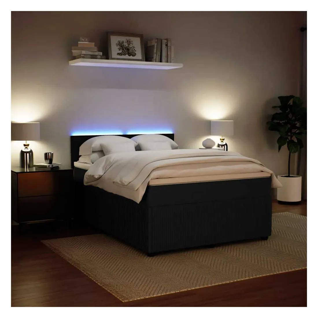 Utilisez ce lit à sommier pour profiter d'une nuit de sommeil réparatrice ! Il vous offre une relaxation maximale et un sommeil agréable. Matériau doux et confortable : le tissu en velours présente une surface douce et lisse qui offre une sensation agréable contre la peau, vous apportant chaleur et confort ultime.Matelas à ressorts ensachés : ce matelas à ressorts ensachés comporte des ressorts ensachés individuels qui fonctionnent indépendamment pour offrir un soutien personnalisé en réagissant uniquement à la pression exercée dans chaque zone. Cette conception empêche « l'enroulement » et réduit le transfert de mouvement par rapport aux matelas traditionnels à ressorts ouverts. Chaque ressort ensaché soutient le corps individuellement.Lumières LED pour une ambiance agréable : ce lit est équipé de lumières LED qui peuvent être facilement réglées pour créer un spectacle lumineux personnalisé. Vous pouvez personnaliser les modes, les couleurs et la luminosité pour améliorer l'ambiance de votre espace intérieur.Surmatelas confortable : ce surmatelas améliore le soutien et le confort grâce à sa surface douce et respirante, tout en prolongeant la durée de vie de votre matelas. Sa housse amovible permet un lavage facile, ce qui facilite l'entretien. Bon à savoir :Ce produit est doté d'un connecteur USB qui nécessite une source d'alimentation USB de 5V certifiée (non incluse).Pour des raisons d'hygiène, le matelas ne peut pas être retourné si l'emballage est retiré ou ouvert.Seule la partie avec un symbole de ciseaux peut être coupée et seule la partie avec l'USB continuera à fonctionner comme avant.